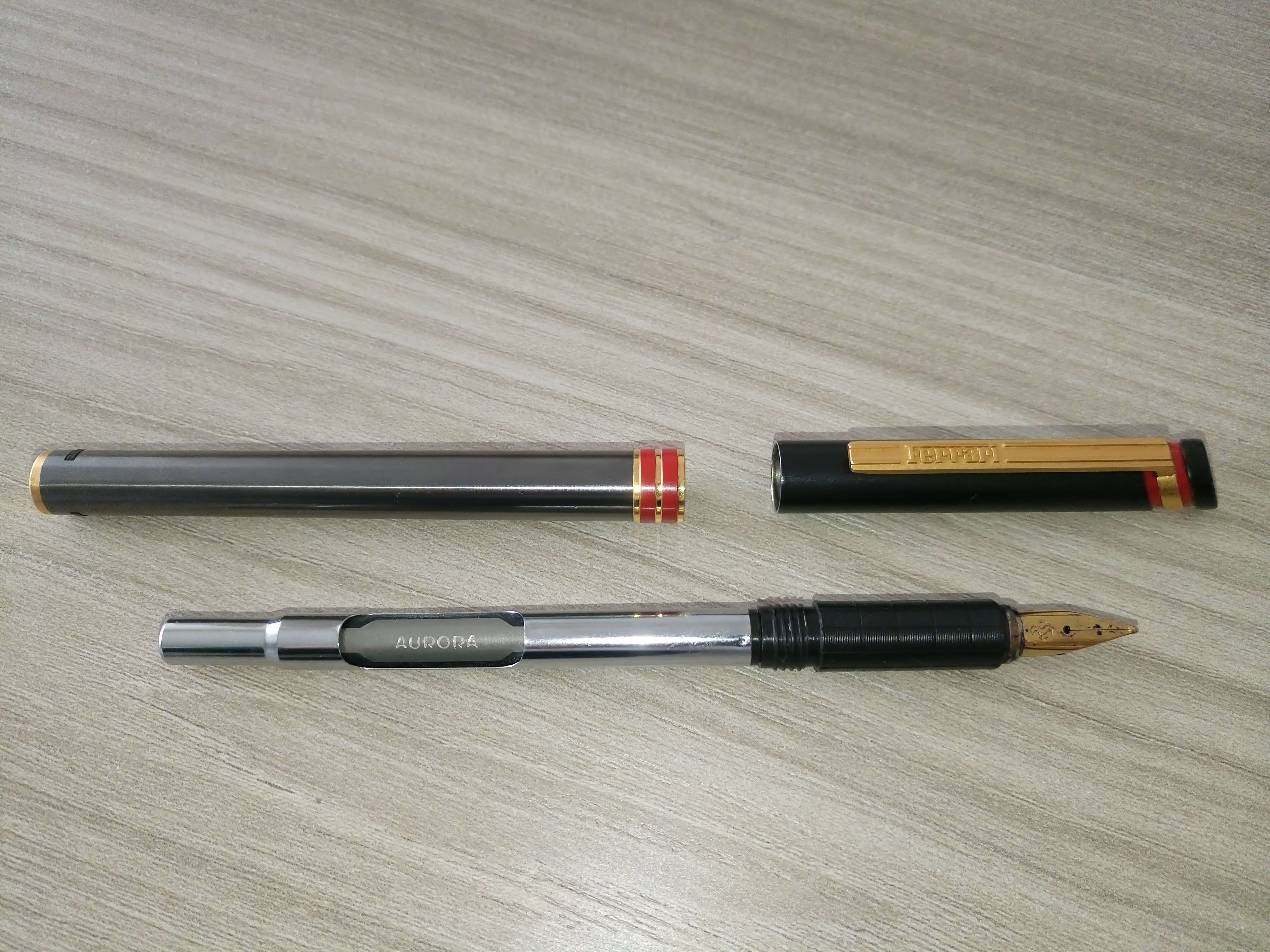 In pratica, illo tempore, mio papà ha forzato una cartuccia Pelikan dentro l'innesto, rompendolo. Per sua fortuna, ha rotto solo la parte esterna, e non lo spillo centrale dell'alimentatore, per cui in qualche modo la penna va ancora e, anzi, ora sembra accettare lo standard Pelikan! Dico "sembra" perché non fa tenuta perfetta, occorre mettere dentro il fusto la "cartuccia di scorta" in modo che tenga spinta la cartuccia nell'alimentatore, così che faccia tenuta.