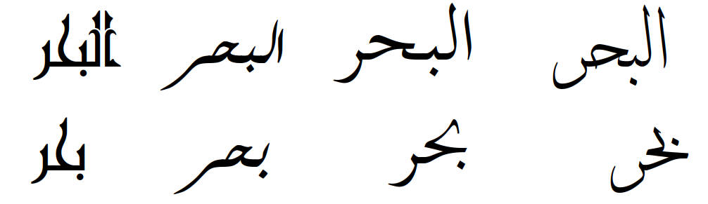 Ti scrivo anche "il mare", albahr; al è l'articolo, il nome senza articolo è bahr. Nella prima riga con l'articolo: