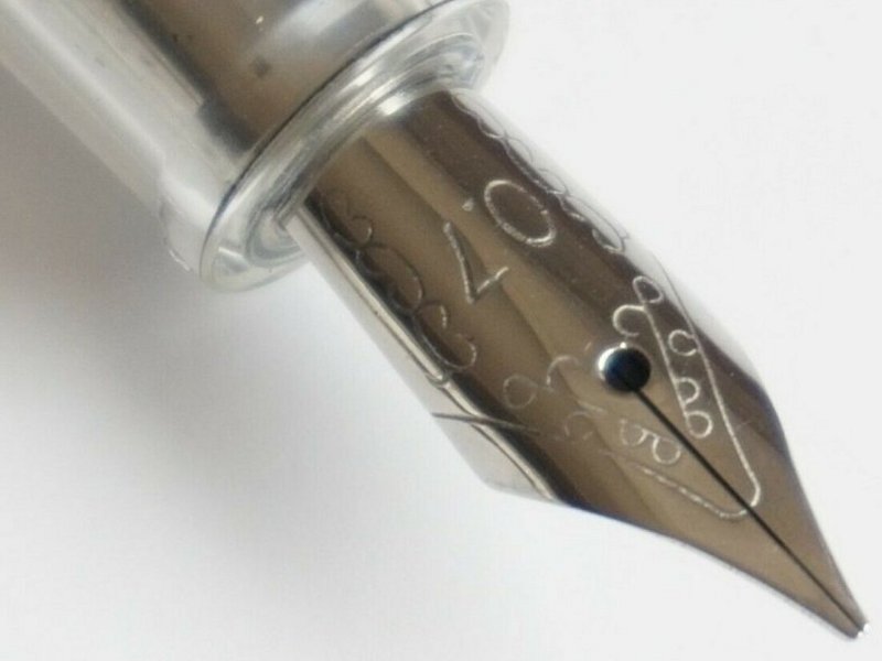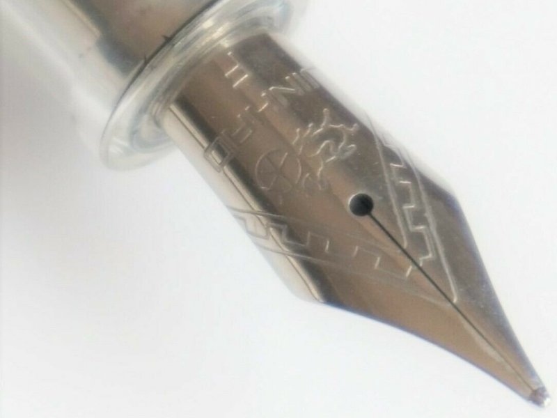Questo pennino è quello che viene fornito come standard. Provato su una penna in plastica come la 599 (che pesa 10 grammi solo fusto e 17 grammi con cappuccio calzato) presenta un flusso abbastanza incostante. Invece su penne più pesanti come la 500 (28 gr. solo fusto e 41 gr. capp. calz.) e la 8802 (27 gr. s.f. e 40 gr. c.c.) funziona decisamente meglio, probabilmente dovuto al fatto che il peso di queste due penne aiuta il pennino a premere meglio sul foglio.