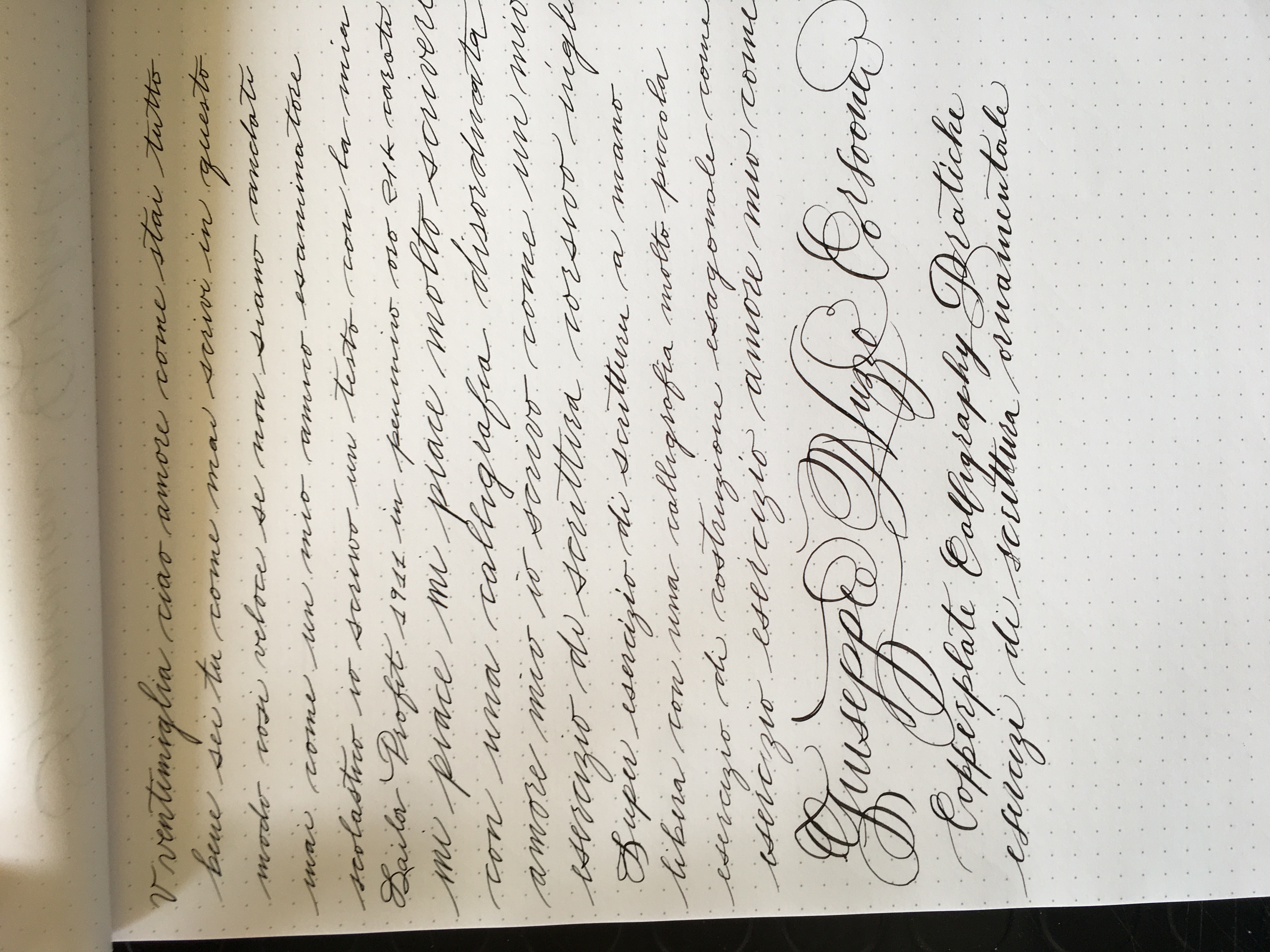 Una sorta di semplificazione dell’american Spencerian che e’ piu ornato e più formale , mentre il corsivo business e’ stato ideato per avere una scrittura veloce ,pratica , che consumi poco inchiostro Ma soprattutto MONOLINEA ,quindi praticabile anche in strumenti economici come una biro (ma ovviamente io uso le stilografiche e lo sperimento anche con pennini flessibili ,diventando così di fatto uno Spencerian ma il bello della calligrafia secondo me è’ proprio quello, imparare le regole delle proporzioni dello stile le sue caratteristiche peculiari e poi romperne gli schemi ,fare tua la scrittura è rielaborarla!)