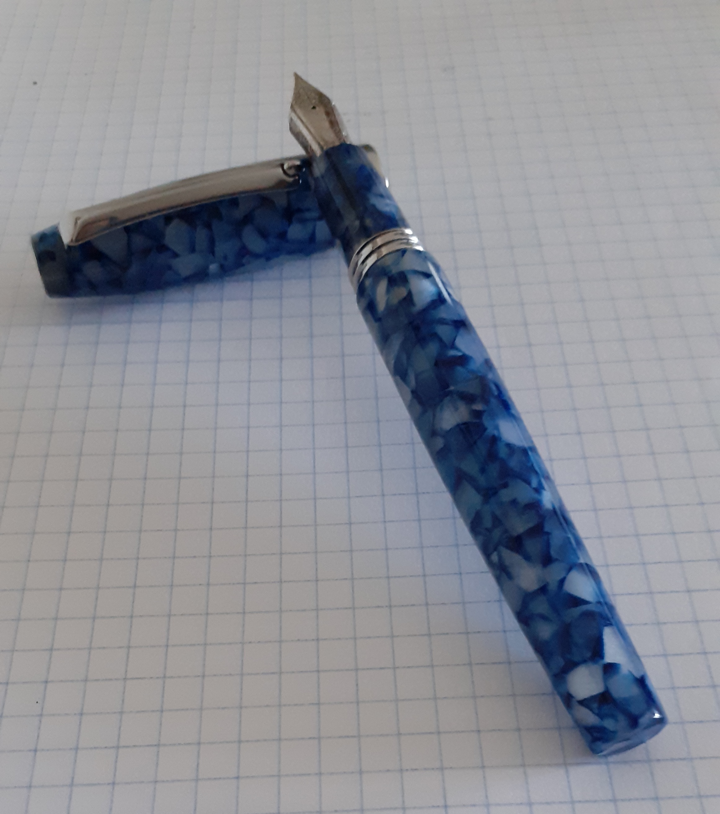 Bella penna, regalata da mia moglie e mia figlia (vabbè con un piccolo suggerimento dato che non ne avevo di mg moderne) riposta dopo tre tentativi perché il pennino fine proprio non ne voleva sapere di fare il suo lavoro