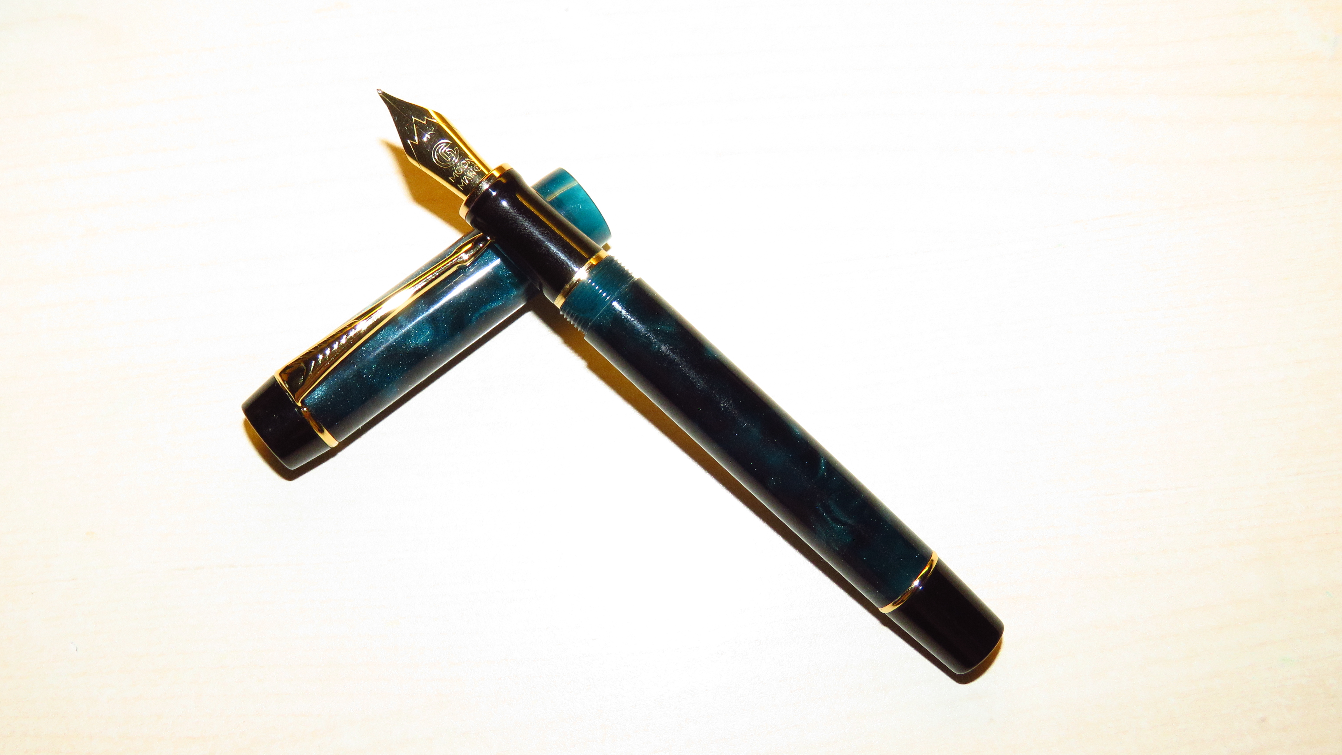 Ho provato a tagliare un pennino extrafine per questa mia Moonman M600s in acrilico blu marmorizzato.