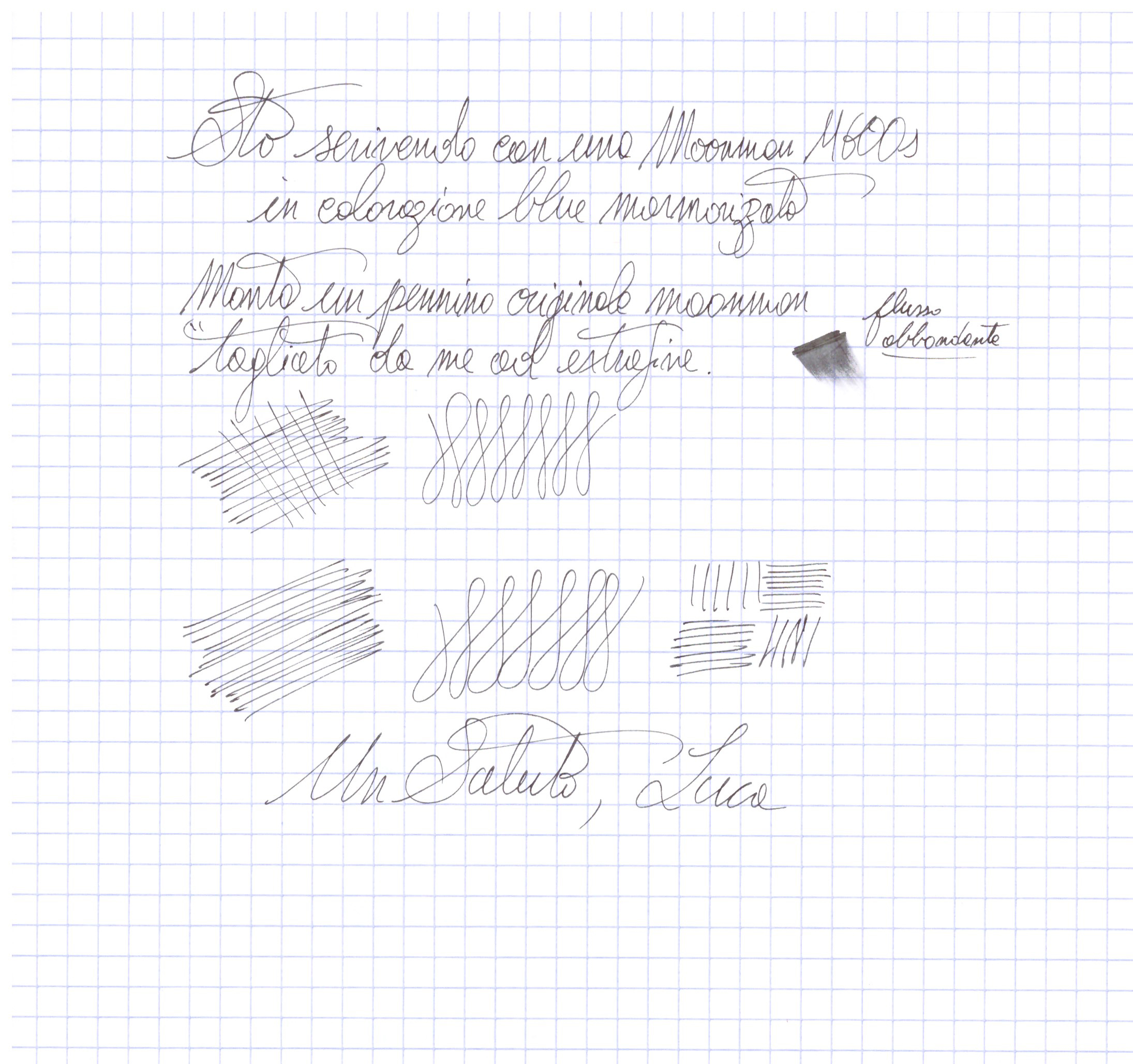 Prova effettuata su carta Oxford Optik Paper 95g/m2 con quadretto 5mm, inchiostro Aurora Nero