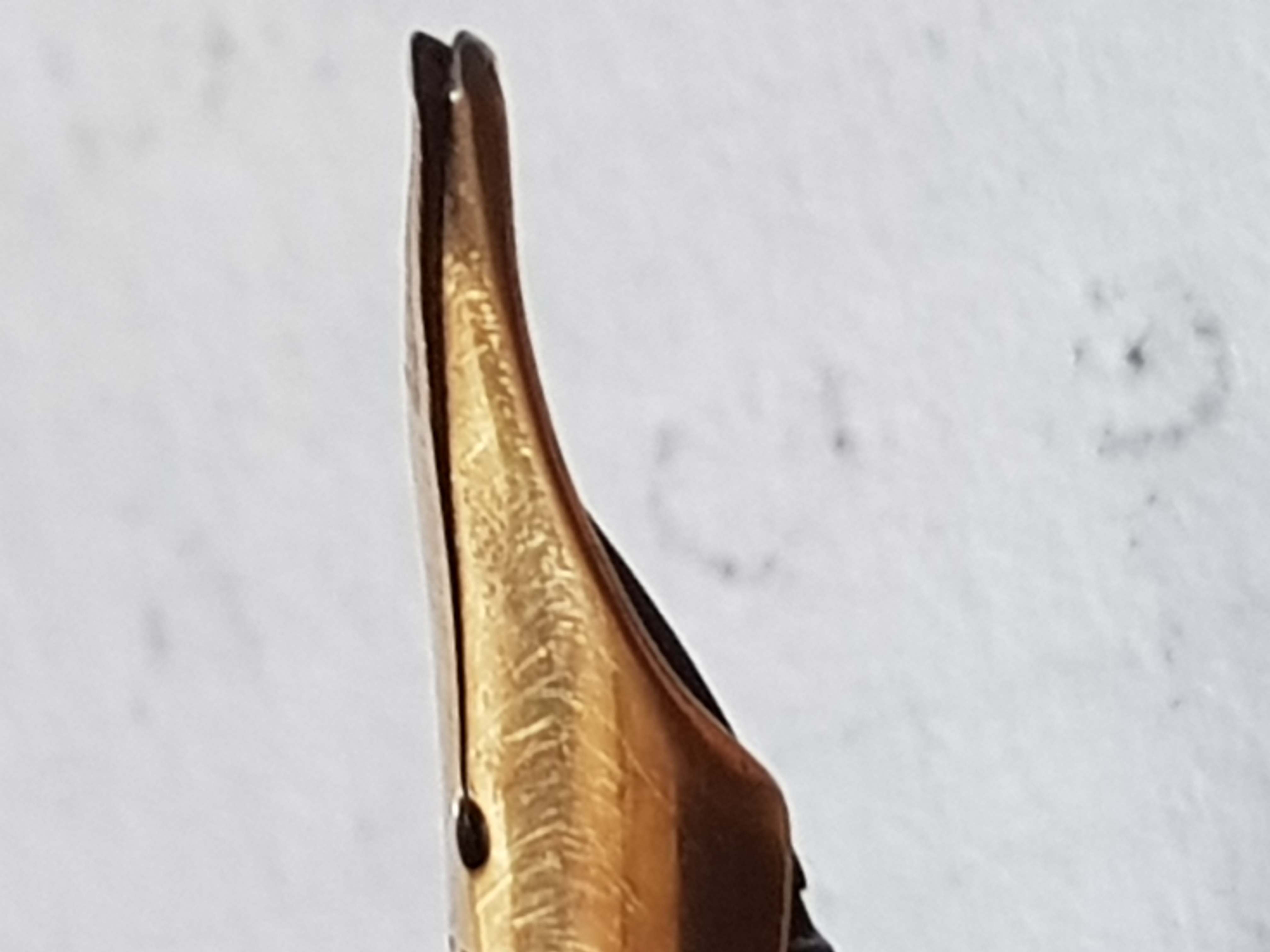 • Il pennino non è detto che non si possa salvare. Dalla foto si capisce poco. In generale, quello che è storto si riesce a raddrizzare. Quello che manca invece, mannaggia, è difficile rimettercelo. Trovare il ricambio preciso per quella penna è forse un'impresa da tentare con riparatori del paese di produzione (UK o USA). Trovare una alternativa è molto più facile.