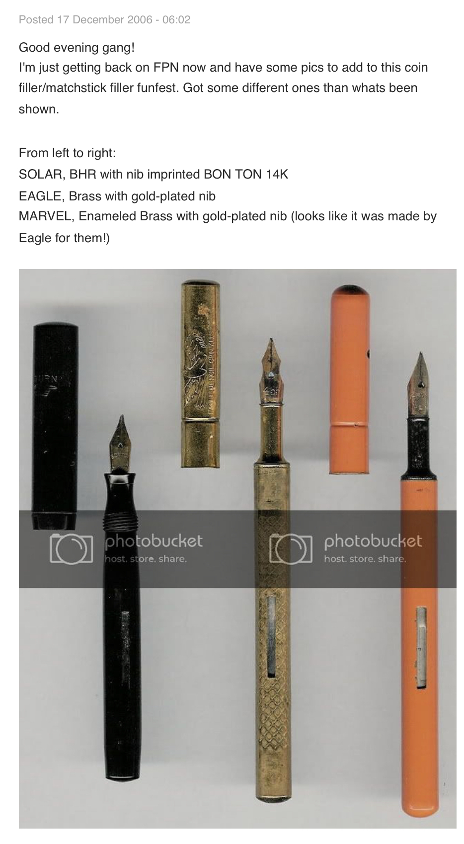 Ne ha scritto anche David Nishimura in un articolo del 2001 https://www.vintagepens.com/first_Sheaffers_2.htm in cui cita la University coin filler, quale sotto marca della Sheaffer. Credo che le coin filler ai primi del ‘900 le facessero decine di marche, in USA.