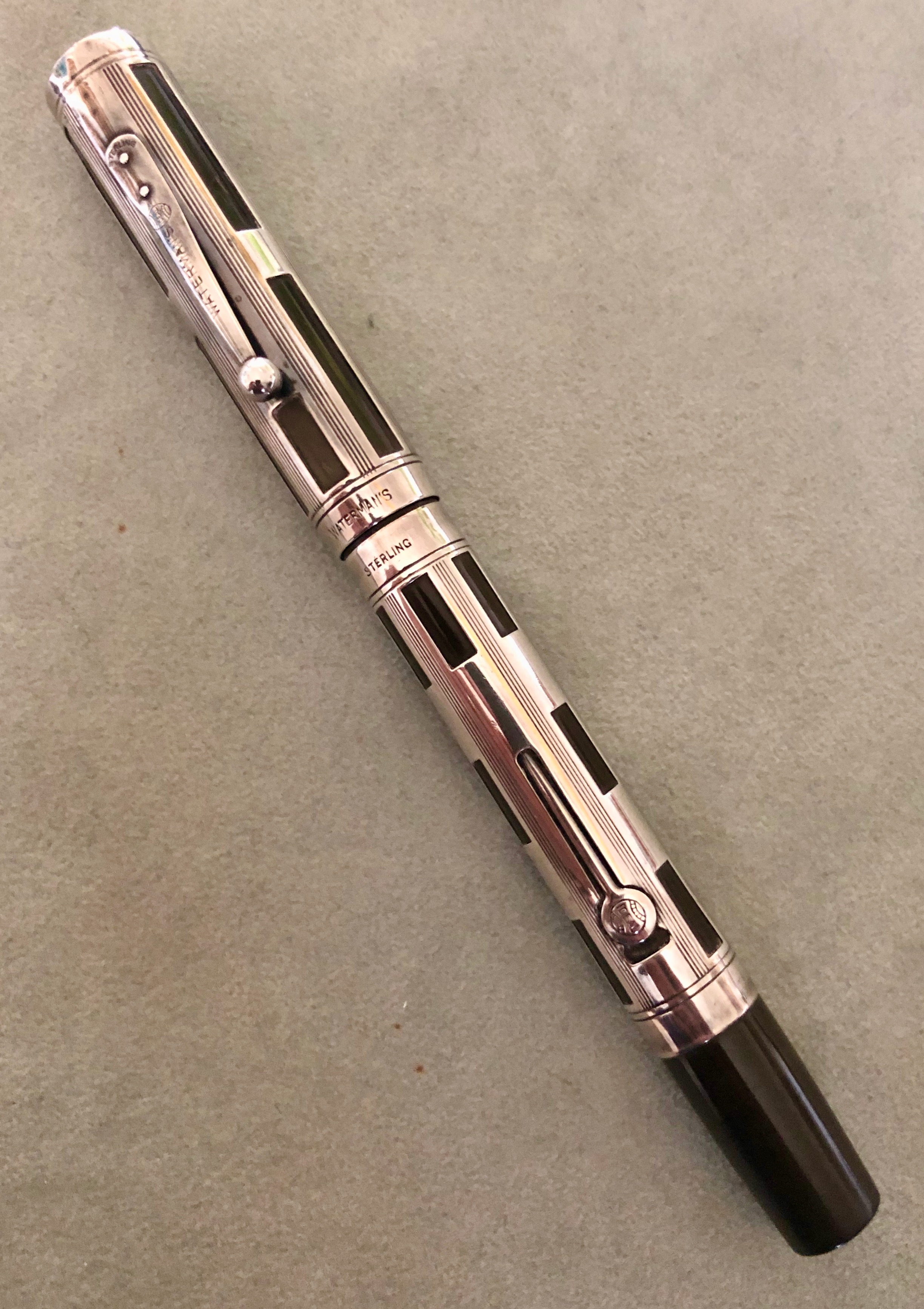 Come ho scritto Waterman negli anni 80 (?) ripropose un modello simile sia in versione argentata e laminata con un bel pennino bicolore.