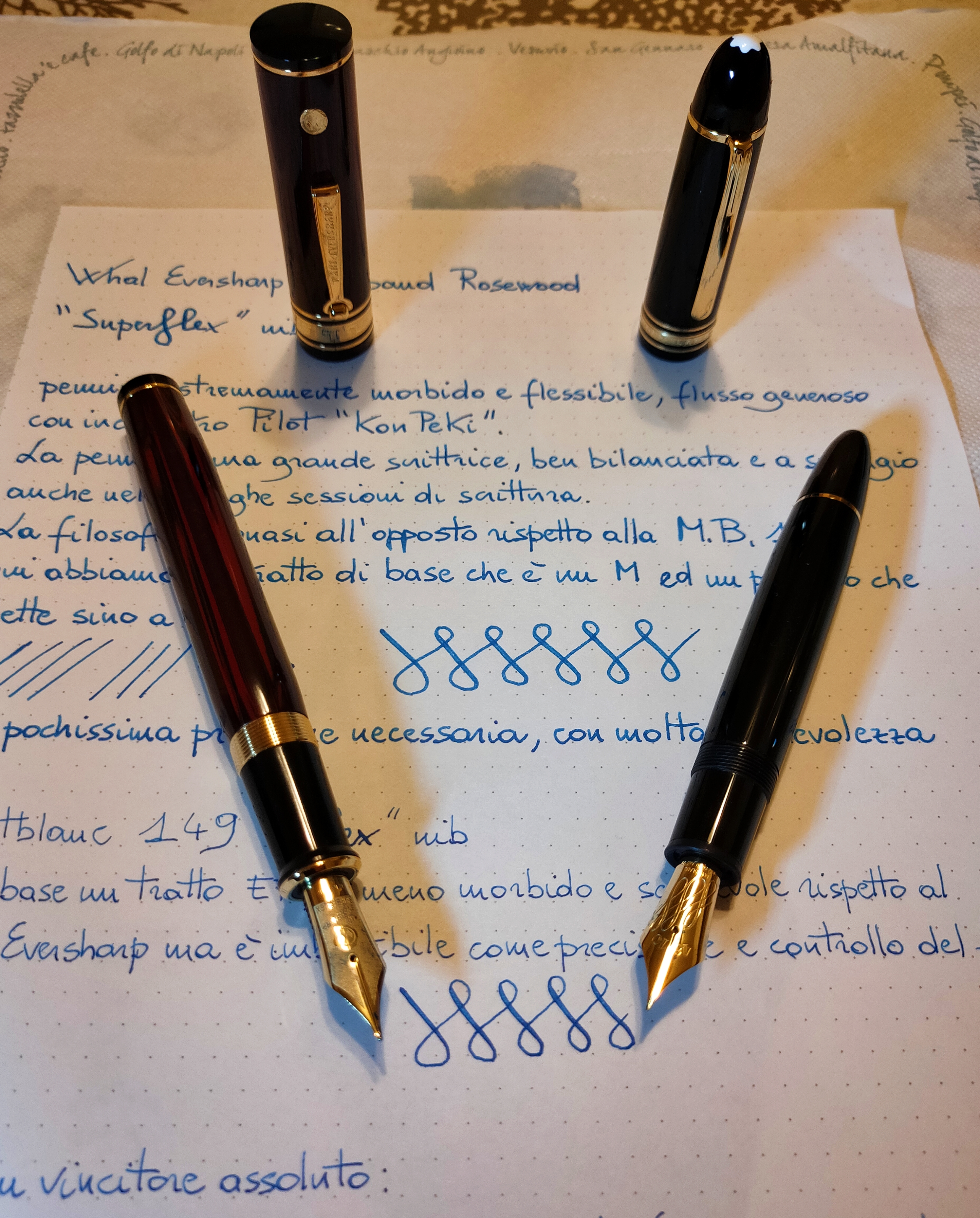 Sin da quando fu annunciata (anche su questo forum, dal suo proprietario-creatore) la Wahl con pennino "superflex", ho avuto il dubbio se le promesse sarebbero state mantenute; ora (per la prima volta) ho potuto farmi un'dea precisa sulle due penne (nonostante "Fufluns" abbia ampiamente illustrato la 149 "flex", questo intervento comparativo è una gradita aggiunta).