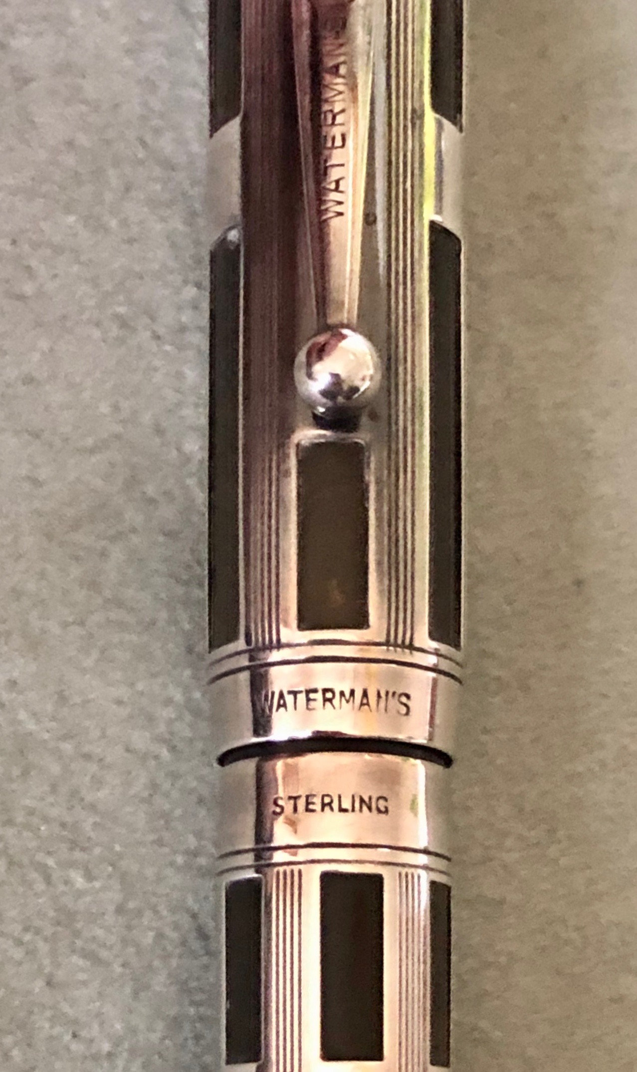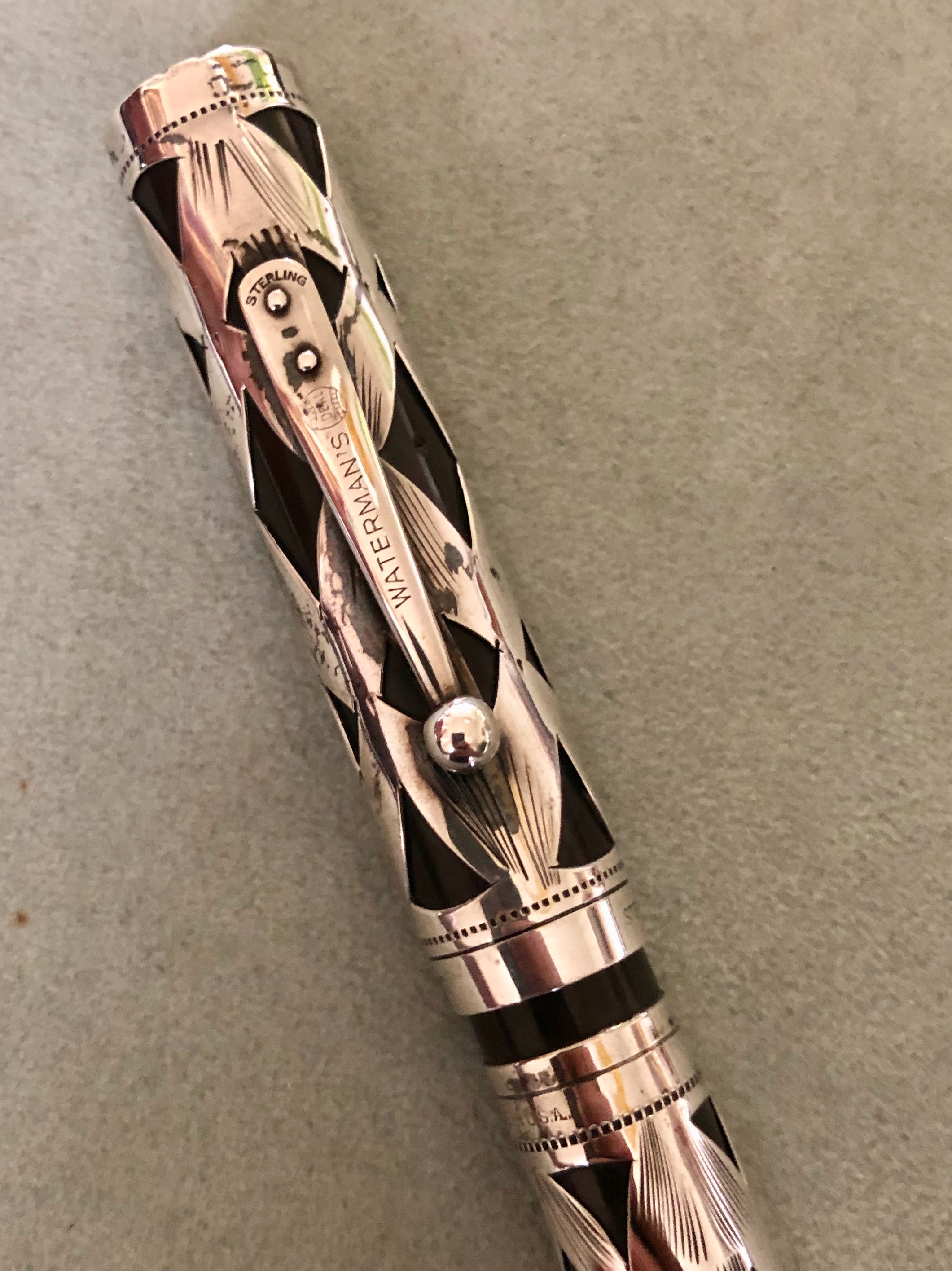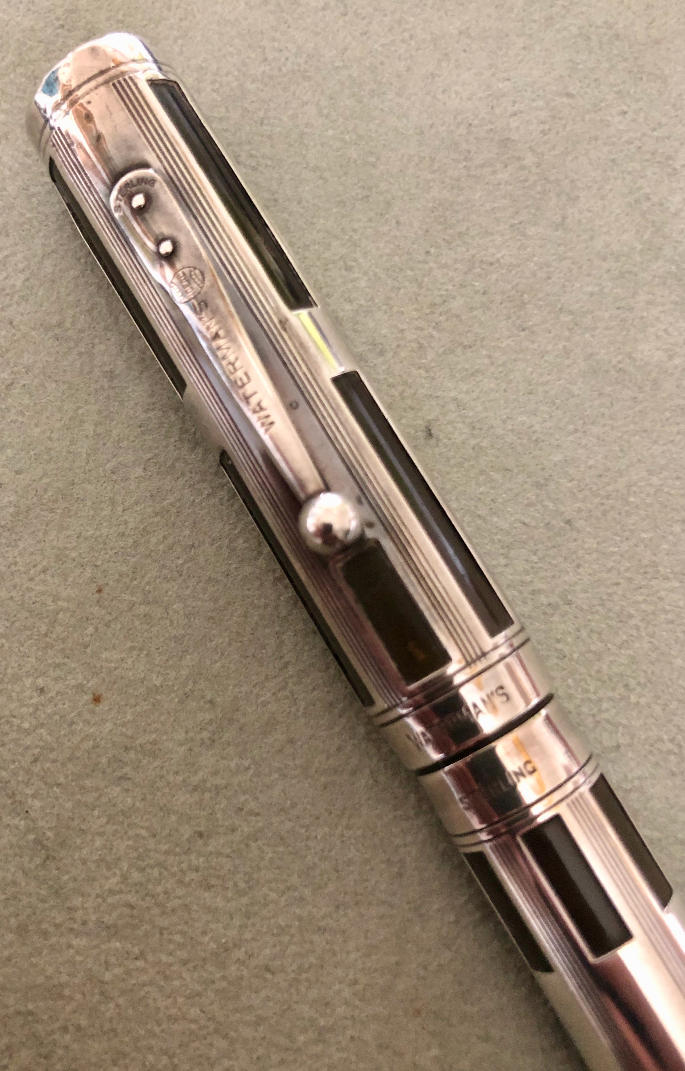 Come ho scritto Waterman negli anni 80 (?) ripropose un modello simile sia in versione argentata e laminata con un bel pennino bicolore.