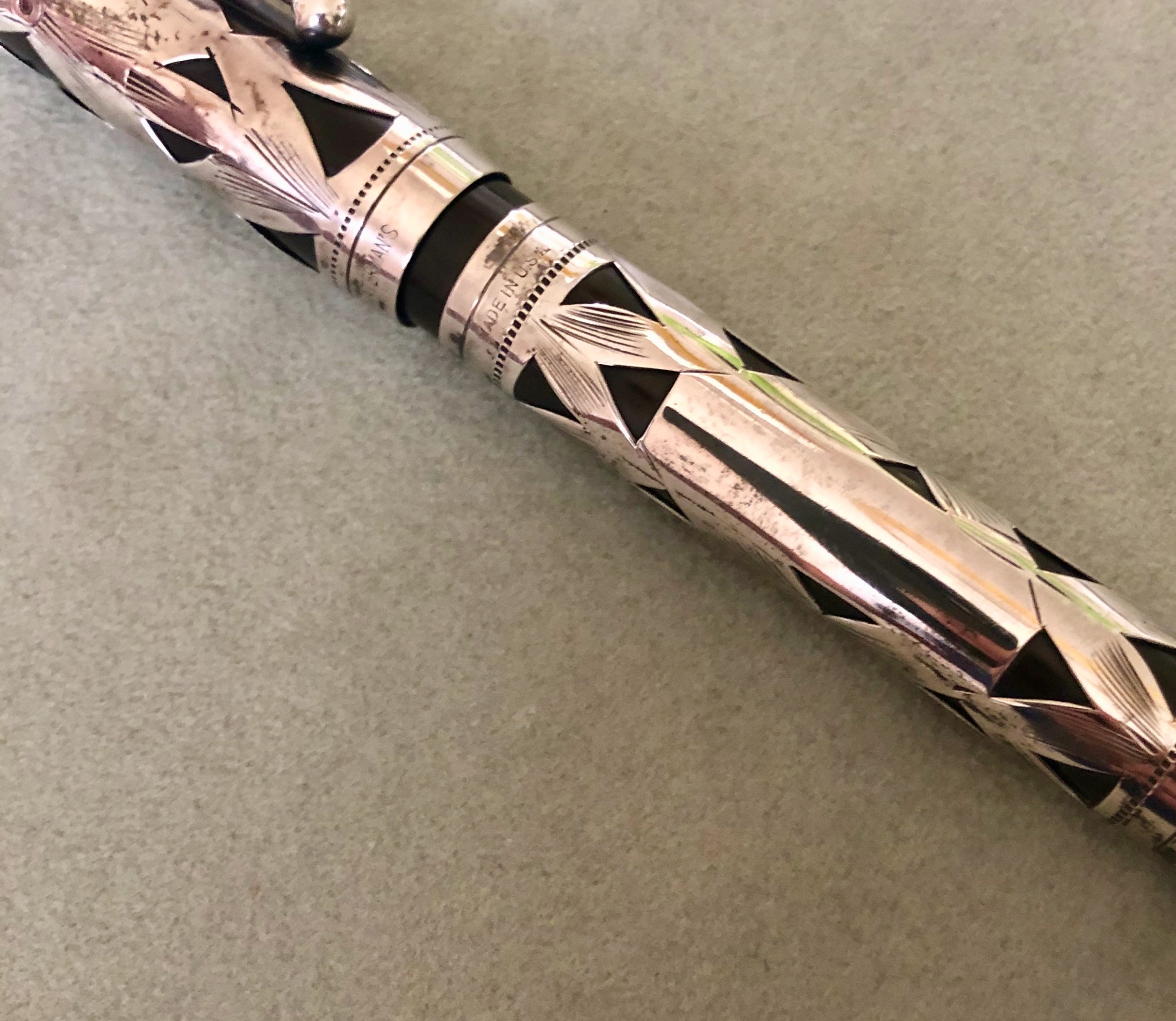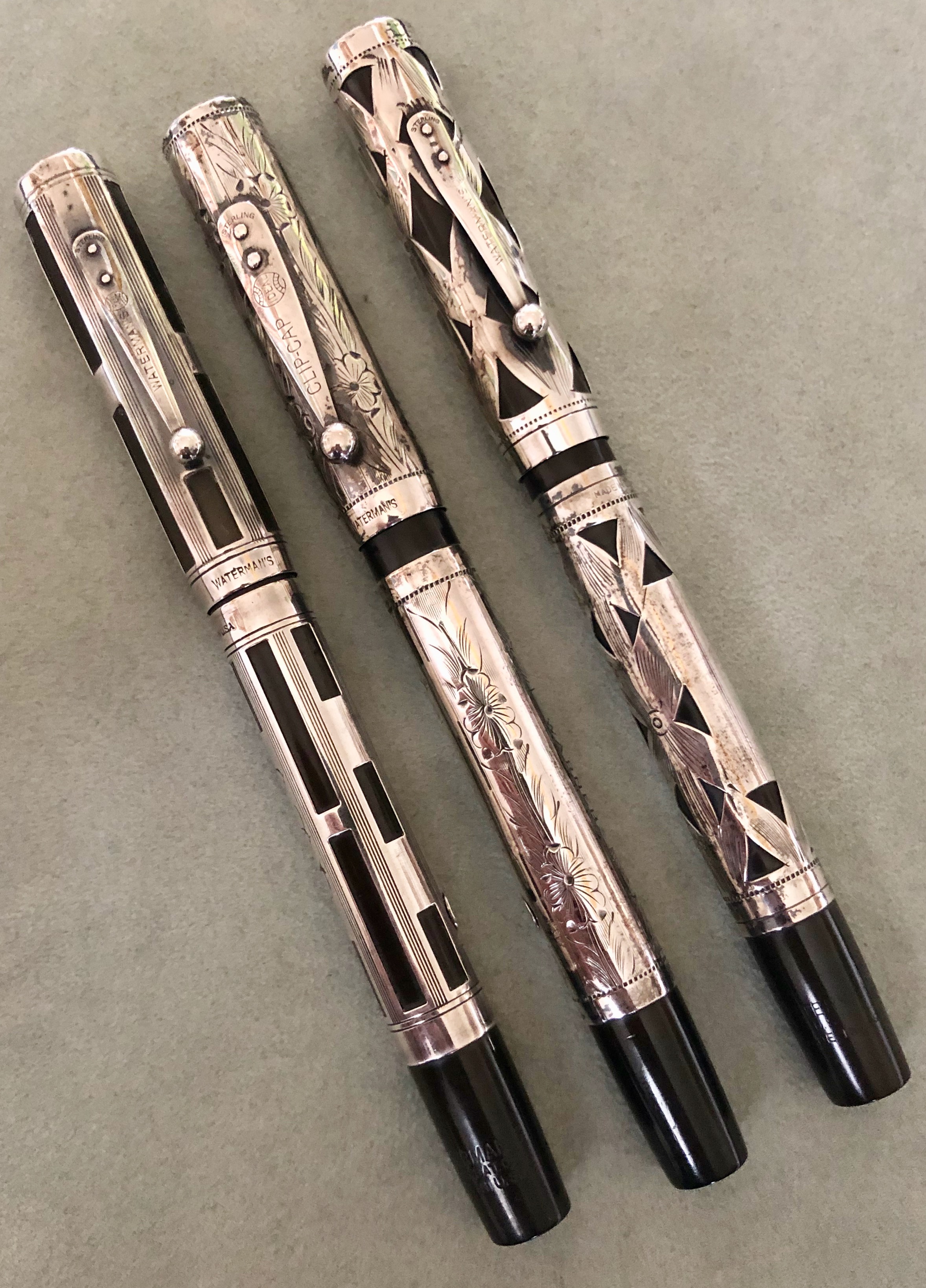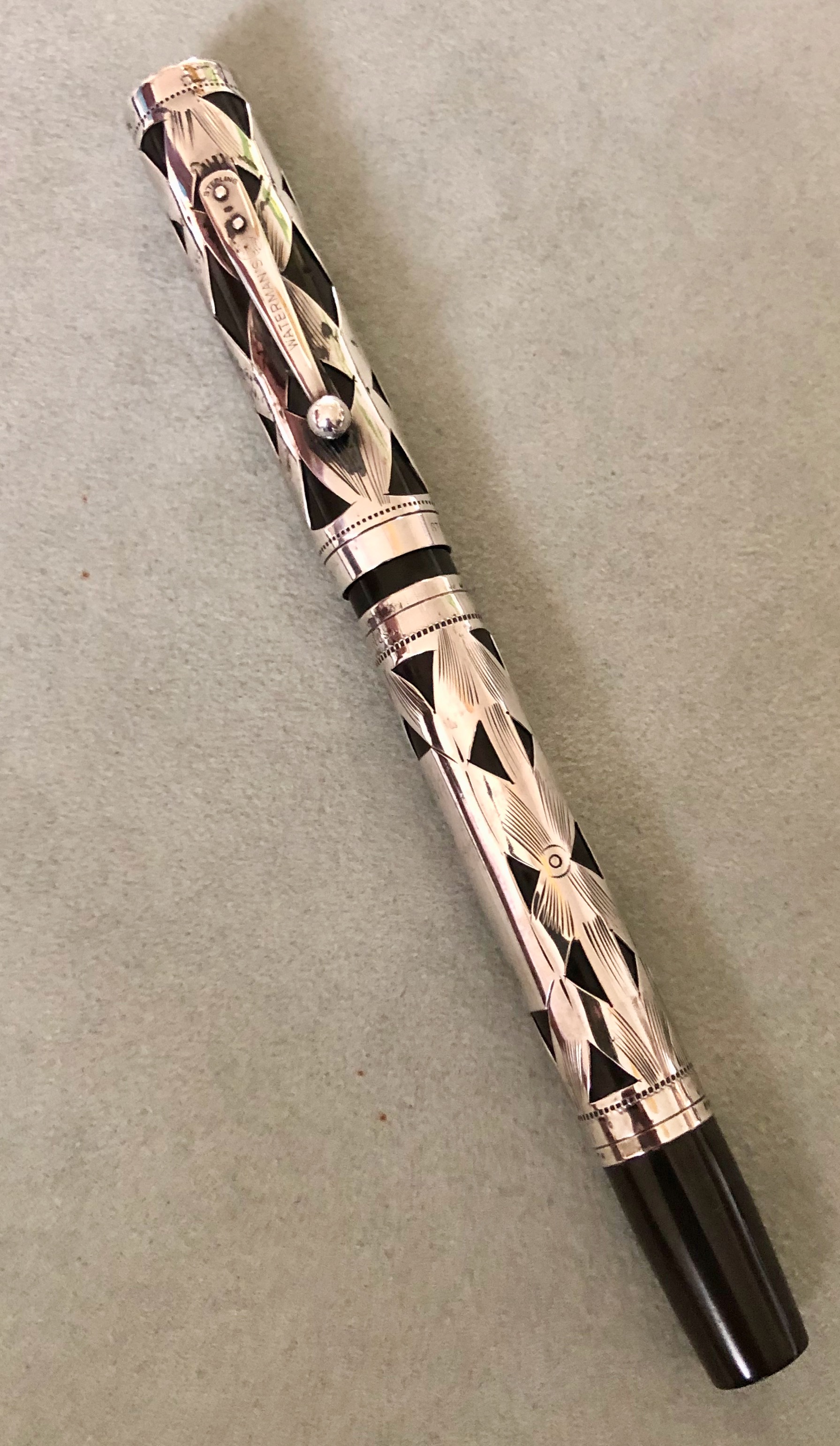 Come ho scritto Waterman negli anni 80 (?) ripropose un modello simile sia in versione argentata e laminata con un bel pennino bicolore.
