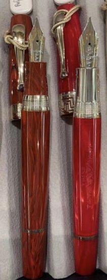 qualcuno mi sa aiutare ad identificare la Montegrappa color ebanite in foto. Quella a fianco dovrebbe essere una 1930 in celluloide rossa.