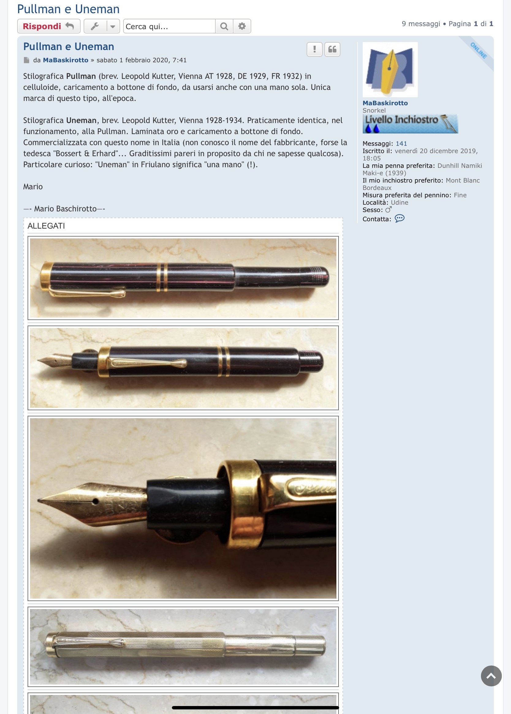 Tribbo ha scritto: venerdì 12 giugno 2020, 21:54 La Pullman l'avevo sentita nominare ma la Uneman no... sono andato a cercare sul Wiki e in effetti risulta essere un produttore italiano di penne simili alla Pullman