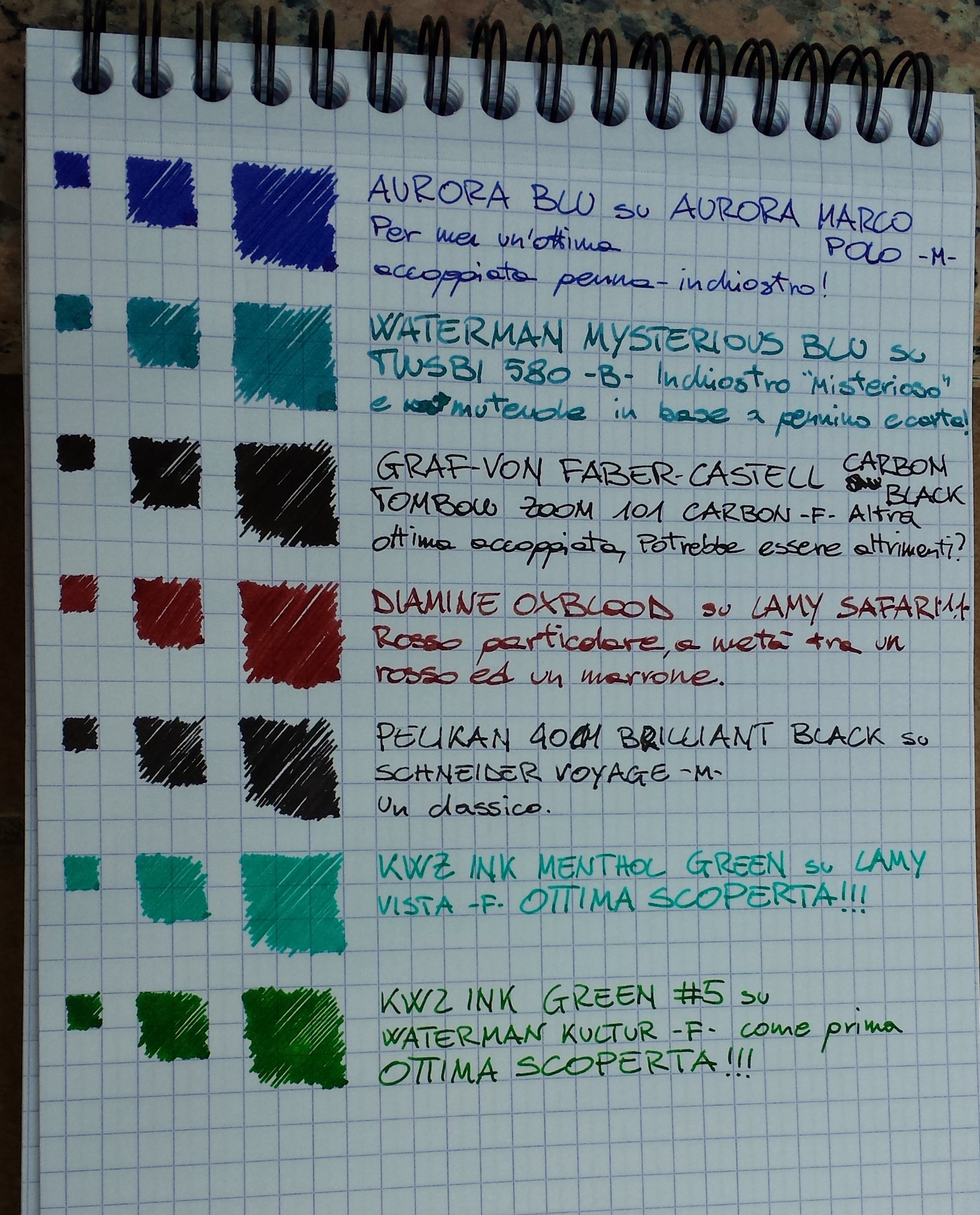 Prova veloce fatta ieri sera(tarda... scusate gli errori...)con gli inchiostri con i quali ho caricato le penne attualmente in uso.