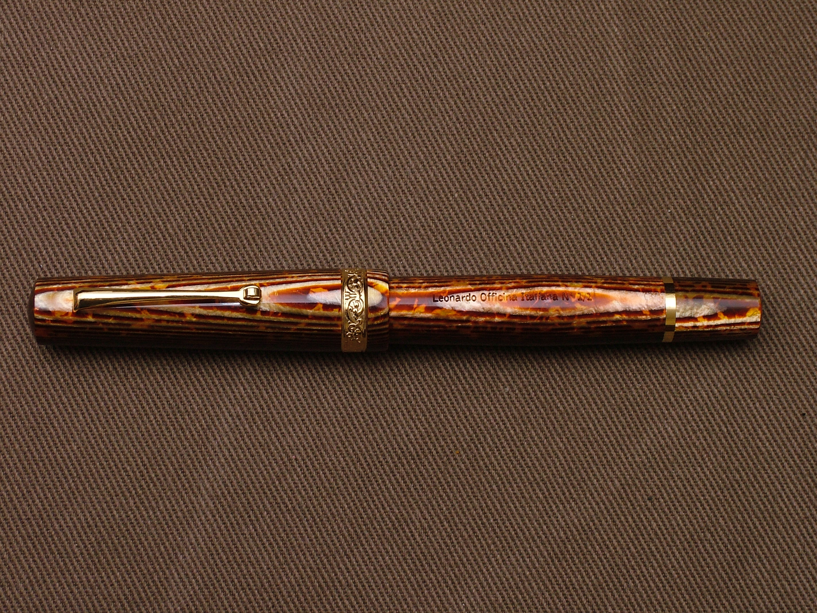 Vera sul cappuccio diversa, vera sul fondello liscia, spinetta sul fondello per smontare il pistone, scritta sul fusto "Leonardo Officina Italiana N° 1/1"