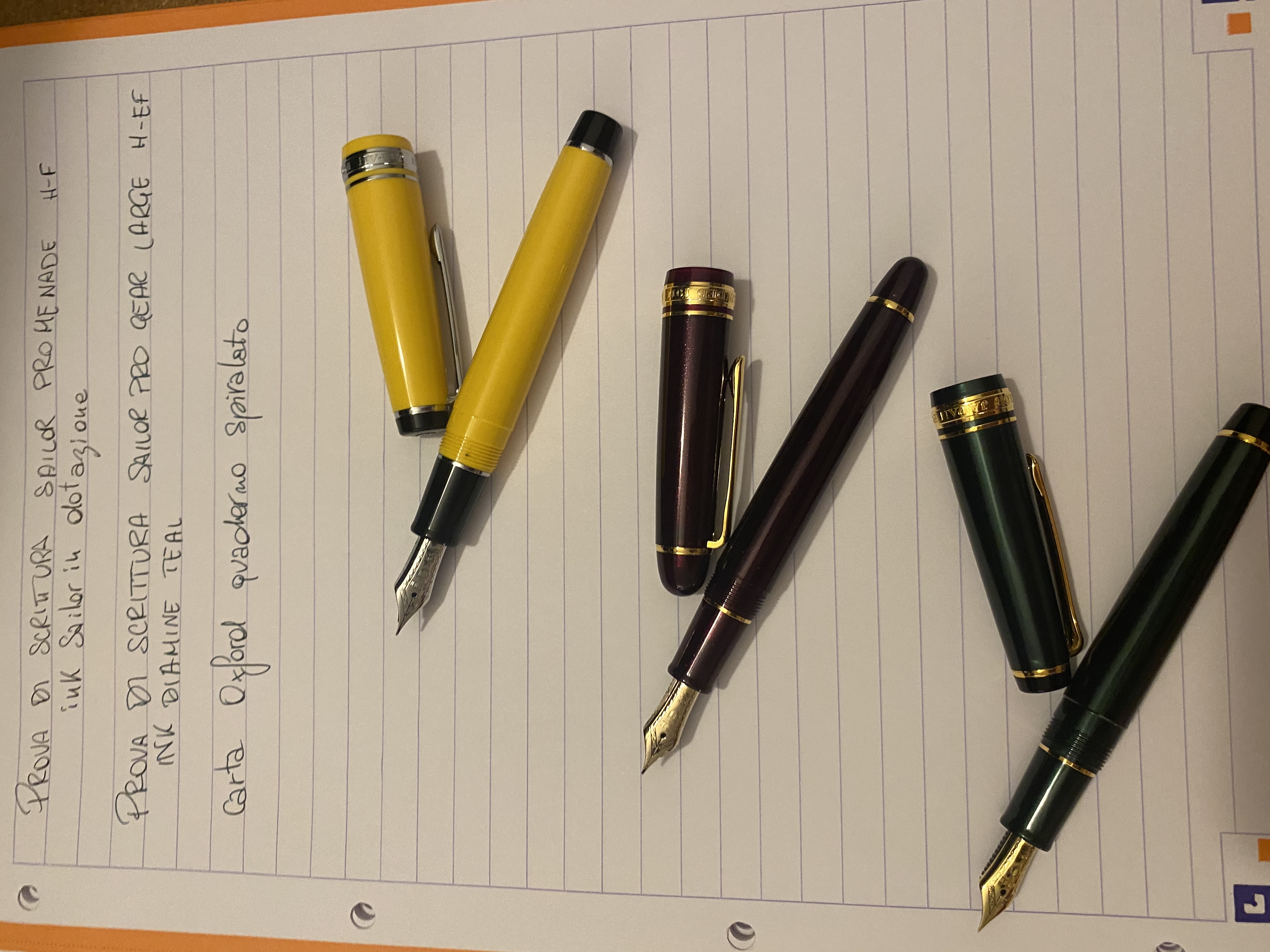 Buongiorno a tutti, volevo condividere i miei ultimi acquisti, parlo di una Sailor pro gear large gialla con pennino EF ed una Promenade con pennino fine.. che dire, sono le mie penne preferite tra tutte Per una scrittura non posata, dei pennini favolosi che nonostante il tratto molto sottile non graffiano la carta.