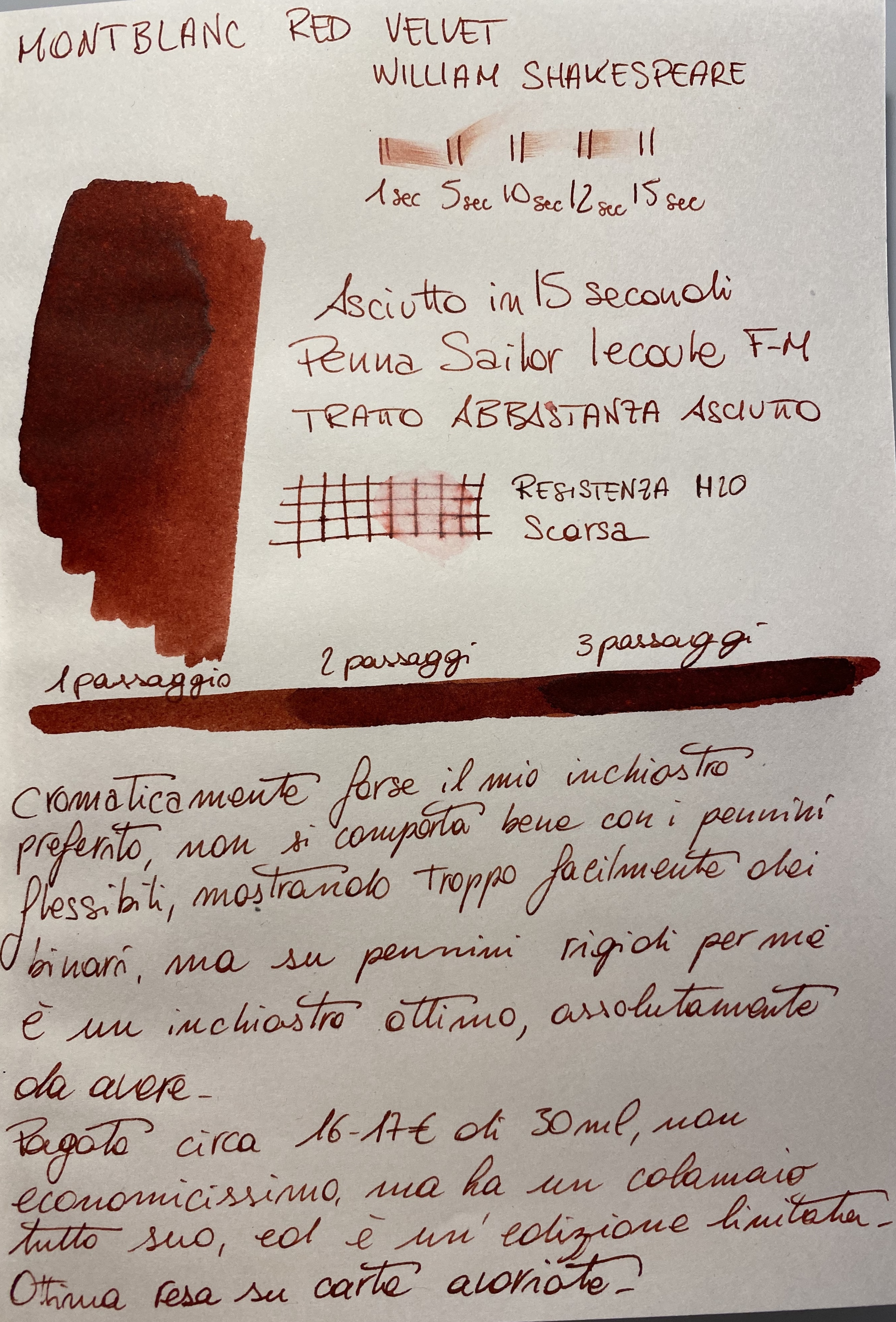 Nel complesso per me un inchiostro da avere molto più di altri rossi montblanc, che però la spuntano per il prezzo e certi dettagli del calamaio.