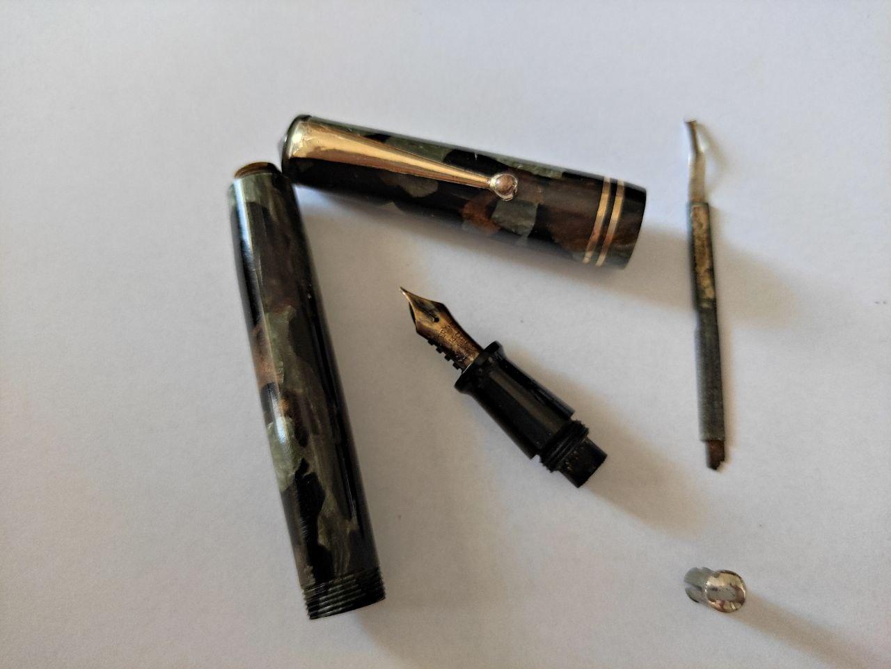 Dopo aver rimesso in funzione una Aurora 88k ho ritrovato nel cassetto del nonno (o forse bisnonno) una splendida penna che sto provvedendo a rimettere in funzione.