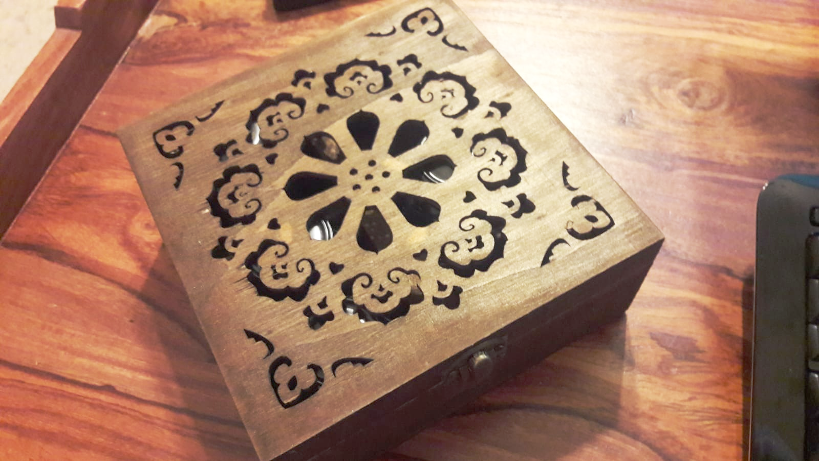 Questa scatolina per decupage, è diventata un portacalamai per Waterman a 6 posti. Qualche assicella divisoria e una passata di mordente... il gioco è fatto.