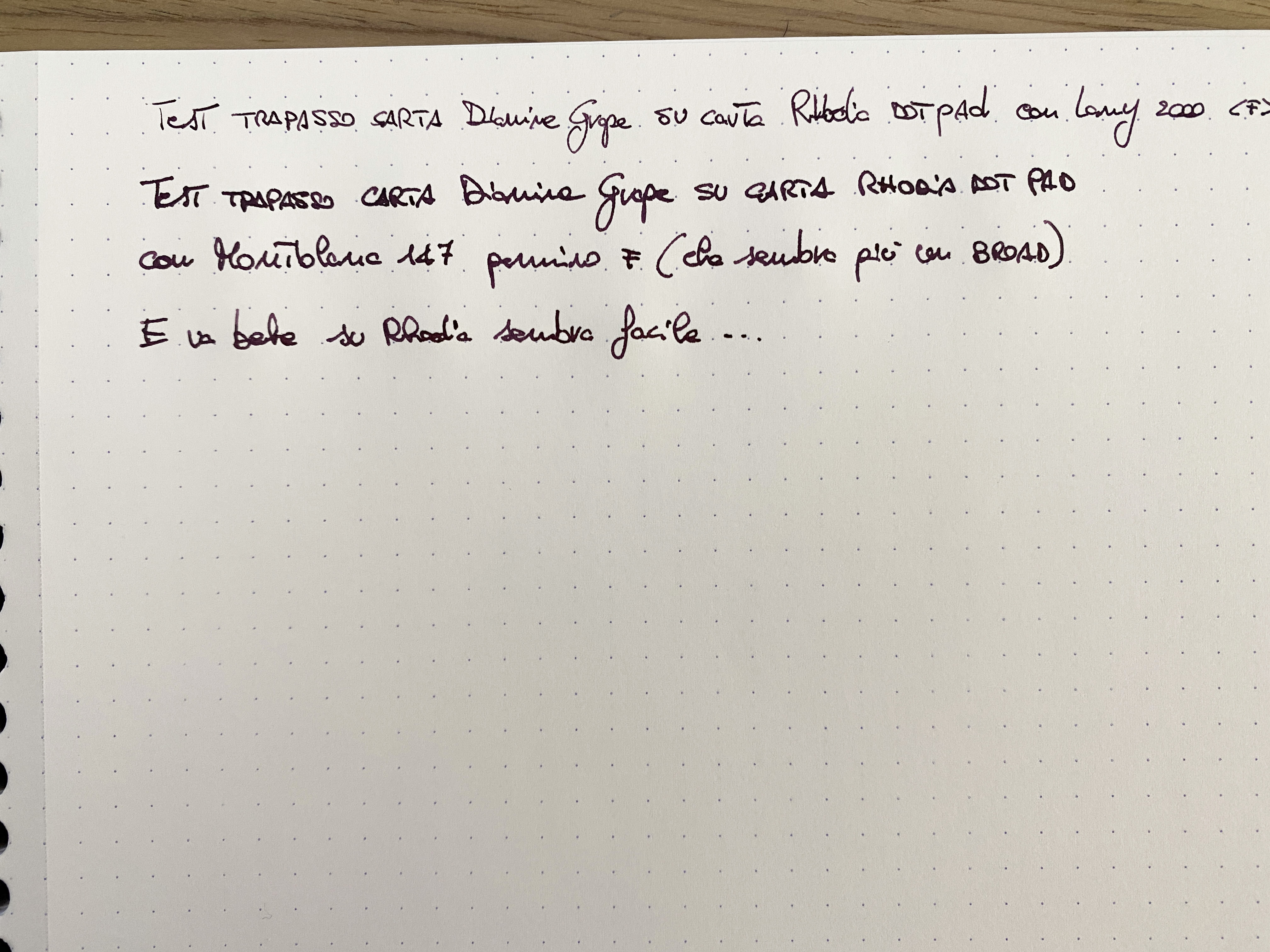 Terrei a puntualizzare, inoltre, che il BSB su pennino BB e carta pigna Architetto NON ha trapassato... il Grape sì :lol: !