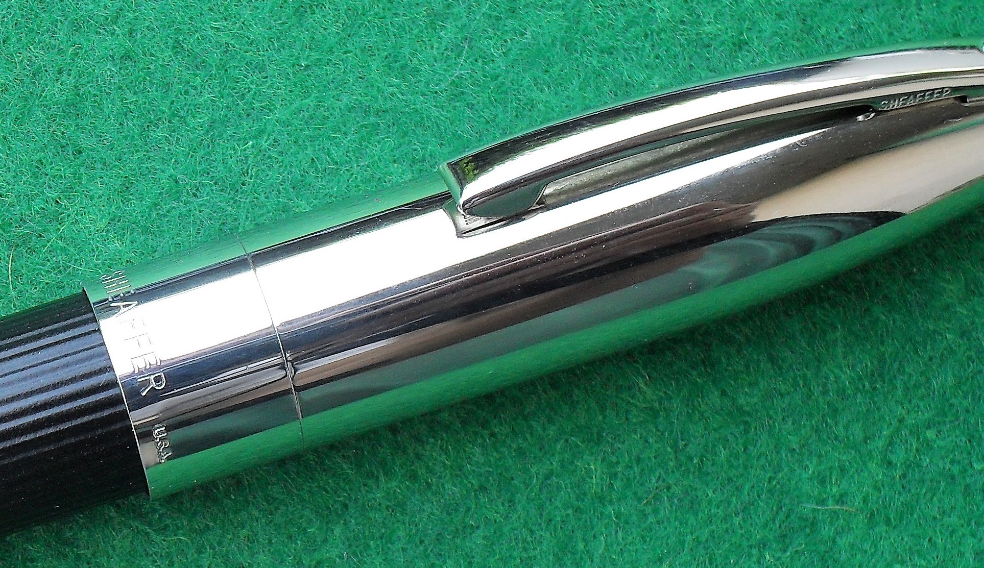 Il bellissimo, per quanto semplice, “white dot”, il punto bianco divenuto sinonimo di Sheaffer’S, non stona affatto ed è senza dubbio più discreto ed elegante d’altri marchi dello stesso colore. Nel caso di questo modello, se non vado errato, il “white dot” significa ancora garanzia a vita, come in origine. Purtroppo, mi riesce difficile confermarvelo, perché non dispongo della garanzia originale.