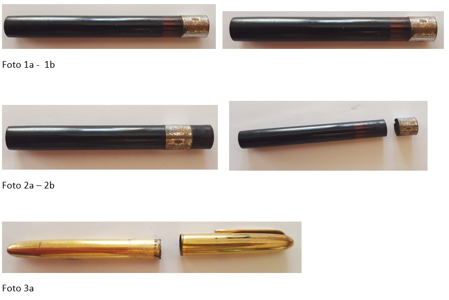Il rivestimento della penna ed il cappuccio ha la lamina dorata usurata (foto 3a-3b-4).