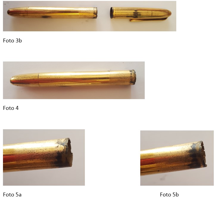 Il rivestimento della penna ed il cappuccio ha la lamina dorata usurata (foto 3a-3b-4).