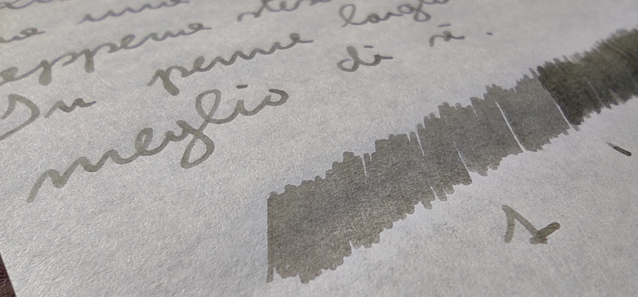 Un grigio interessante. Come lo trovi confrontandolo col Diamine Silver Fox, in quanto a resa e comportamento? Sempre se hai modo di confrontarli. Il Silver Fox è un bel colore, ma mi pare un po' asciuttino...