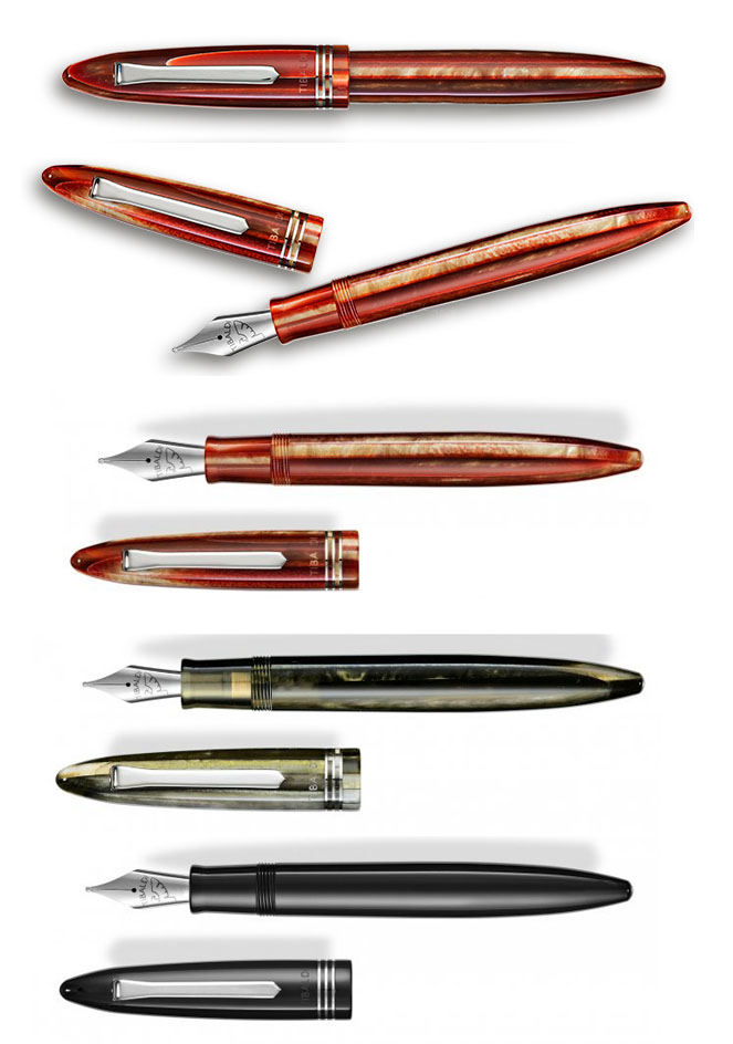 Apprezzo assolutamente che sul fusto non ci siano anellini metallici, neppure per separare il serbatoio dalla sezione. E mi piace che non ci sia "gradino" dove inizia la sezione. Il prezzo non é malvagio e neppure regalato per una penna con pennino in acciaio. Ma hanno B e BB, che se fossero un po' tronchi potrebbero essere interessanti, e l'alimentatore in ebanite, un bel dettaglio.