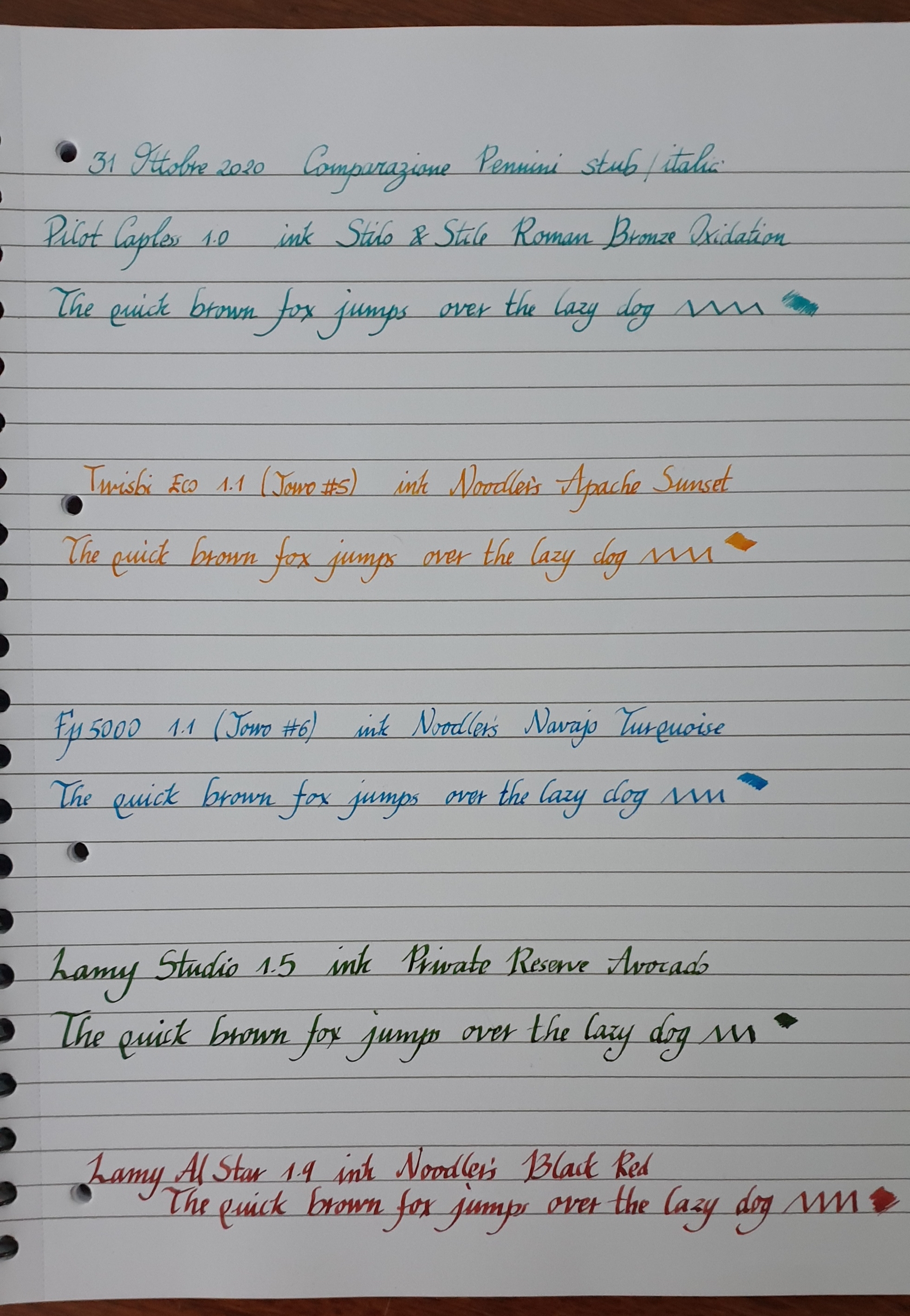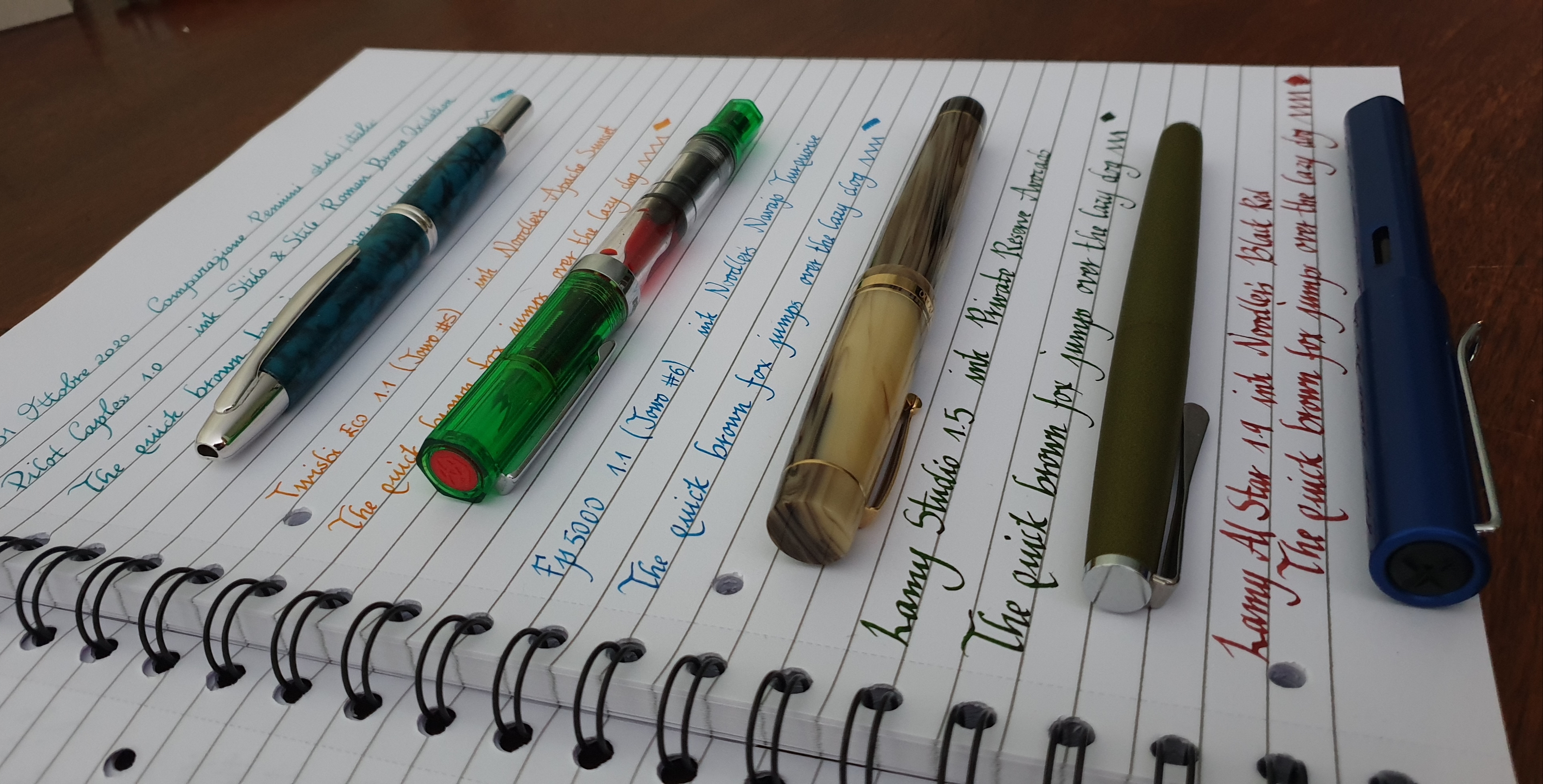 Gli inchiostri sono tutti diversi perché tutte le penne erano già cariche e non avevo voglia di buttare inchiostro/lavare tutto etc....Mi sono già sporcato le dita così