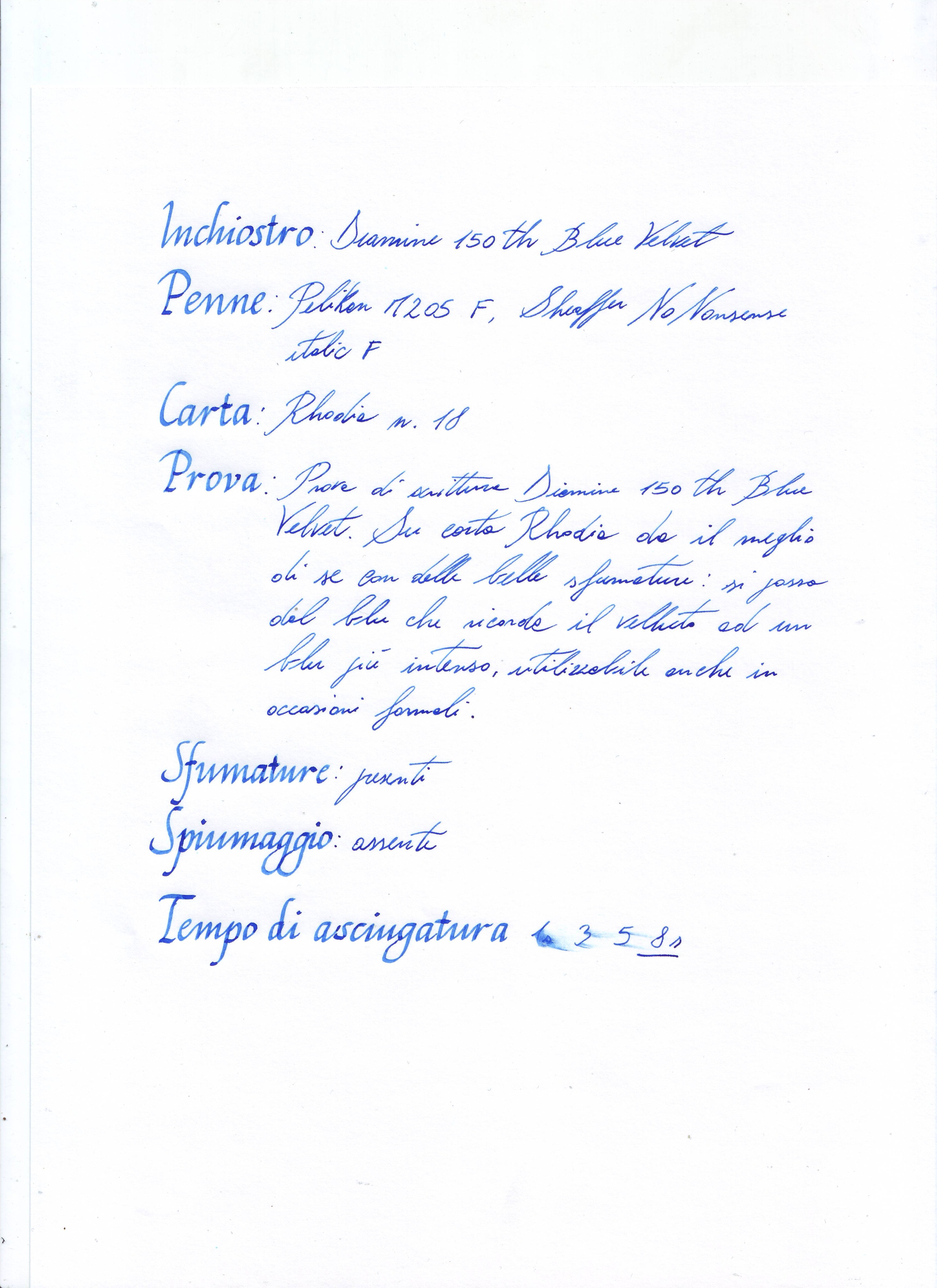 Il mio inchiostro preferito: Diamine 150th Blue Velvet