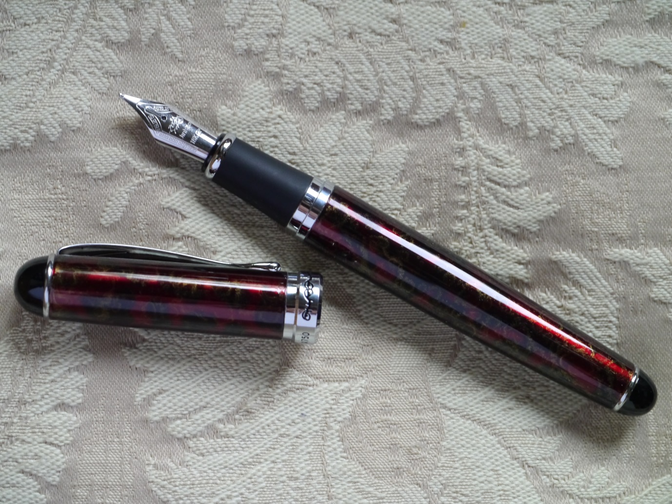 Della Jinhao ho la X750 e la massiccia X450: come scritto altrove le uso poco perché alla fine le penne in metallo non mi fanno impazzire (specie la X450 poi è molto pesante) e la scrittura non è piacevole rispetto a penne tipo Plaisir o TWSBI (ma siamo su tutt'altre fasce di prezzo).
