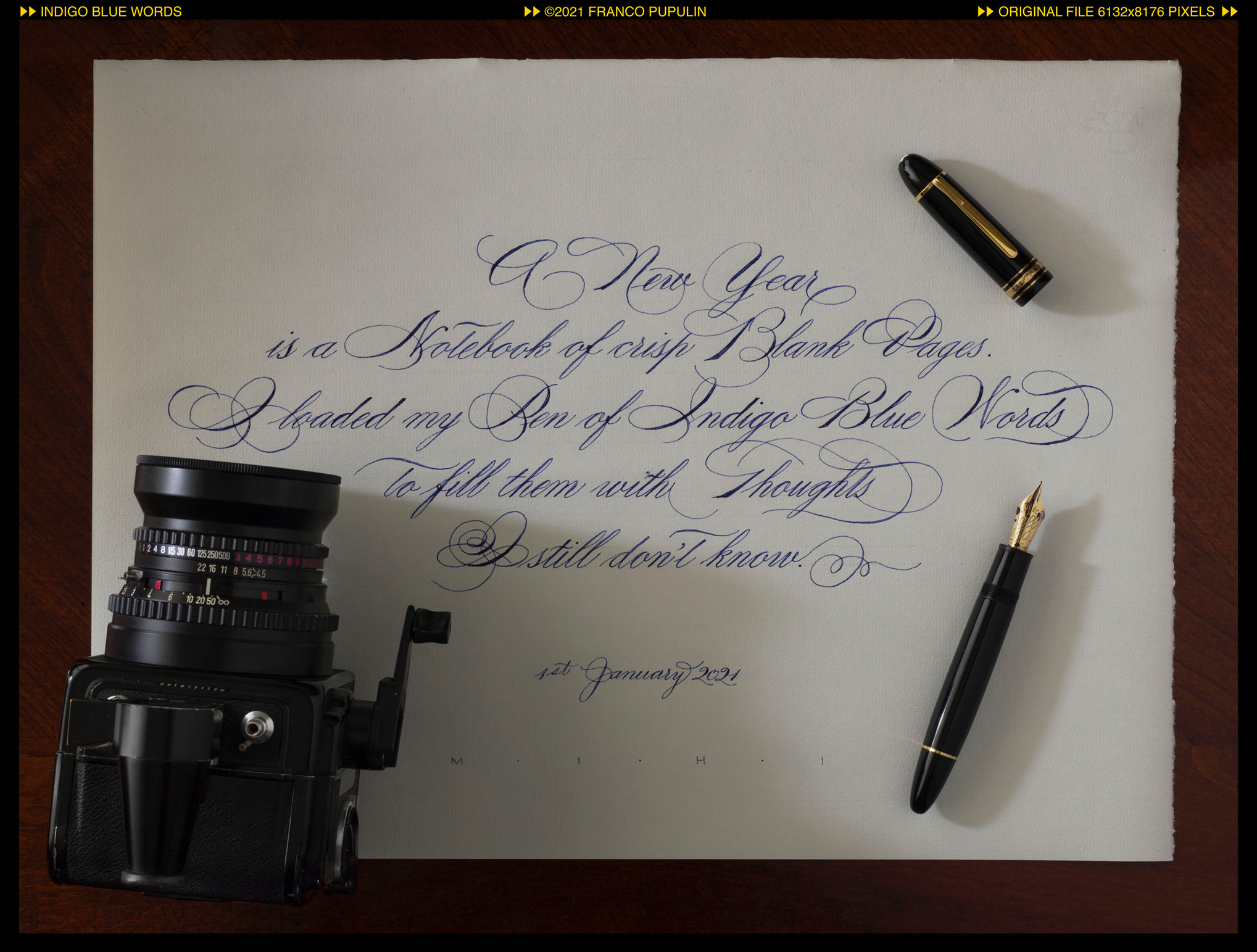 La Super Wide C/M è un’altra presenza costante sulla mia scrivania, e siccome le sue linee mi piacciono moltissimo, le ho lasciato mettere il naso nella fotografia. Inoltre, forse non tutti sanno che la Montblanc Meisterstück 149 e la Hasselblad Super Wide sono nate a pochi anni di distanza, la prima nel 1952 e la seconda nel 1954: due oggetti che in oltre sessant’anni sono stati appena modificati e fanno ancora alla perfezione il loro lavoro!
