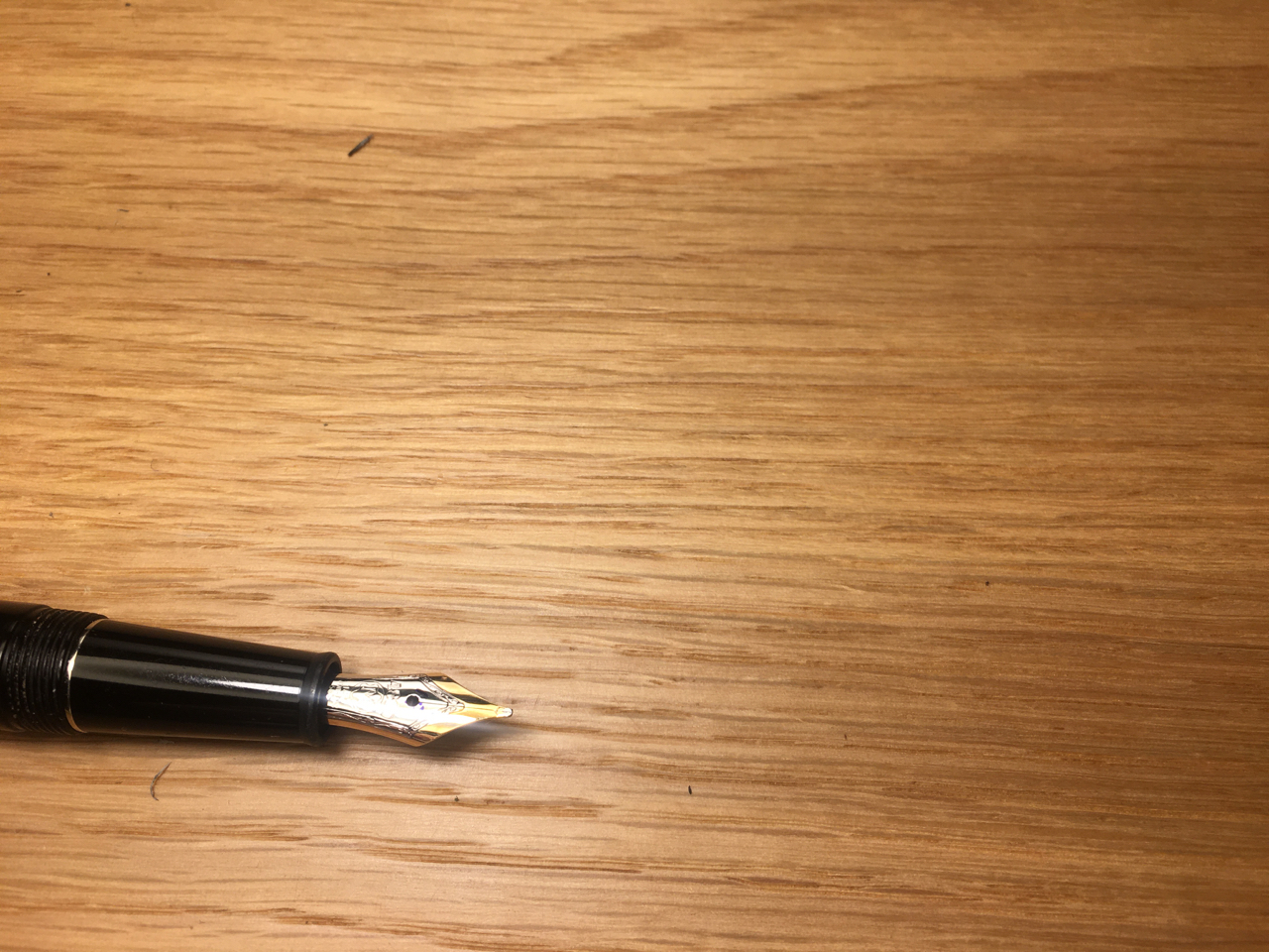 La svolta infausta ha un nome: Permanent black di Montblanc. La penna funzionava regolarmente (magari non era perfetta ma io non me ne accorgevo) quando fui attratto da questo inchiostro: mai scelta fu più sbagliata. Fu acquistato su Amazon, confezione all'apparenza originale ma visti i risultati mi venne anche il dubbio che ci fosse qualche problema di qualità. La penna smise di funzionare regolarmente: l'inchiostro usciva a tratti, o per niente per lunghi tratteggi. Per prova montai la cartuccia su una onesta Pelikan che smise di funzionare anch'essa. Individuato il problema nell'inchiostro (più tardi scoprii che il permanent è particolarmente denso e quindi più difficile da gestire per sua natura), ritornai alle vecchie 4001 ma ormai il danno era fatto: la penna non era più la stessa. Feci alcuni lavaggi ma abbandonai l'impresa.