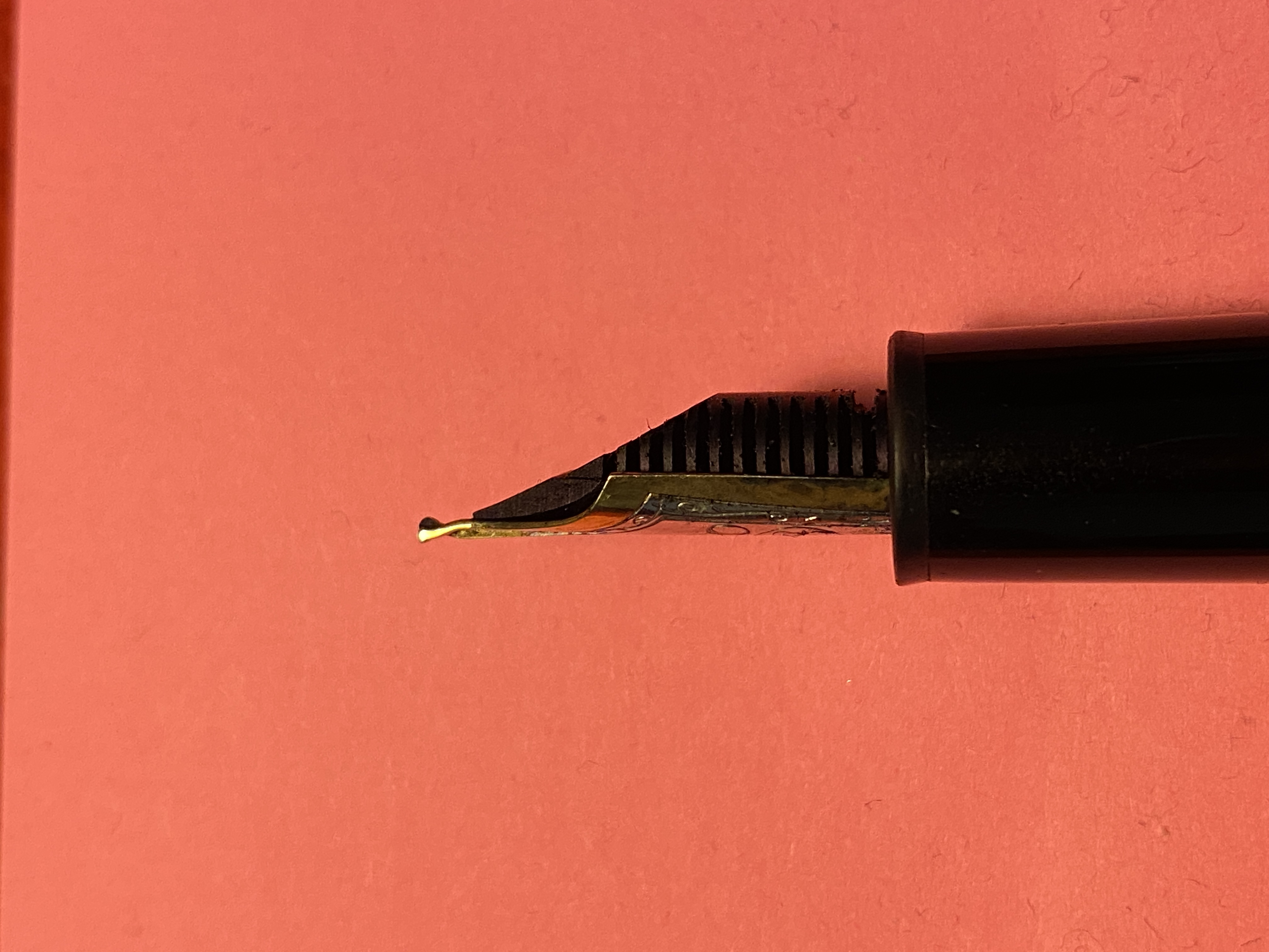 Come vedrete nelle foto il pennino è piegato “io dico non di tanto” L’ho fatta vedere in una bottega e mi è stato detto che non si può riparare, ma ho visto nel forum che alcune penne maggiormente danneggiate, hanno acquistato nuova vita e credo, spero, che si possa fare lo stesso. :)