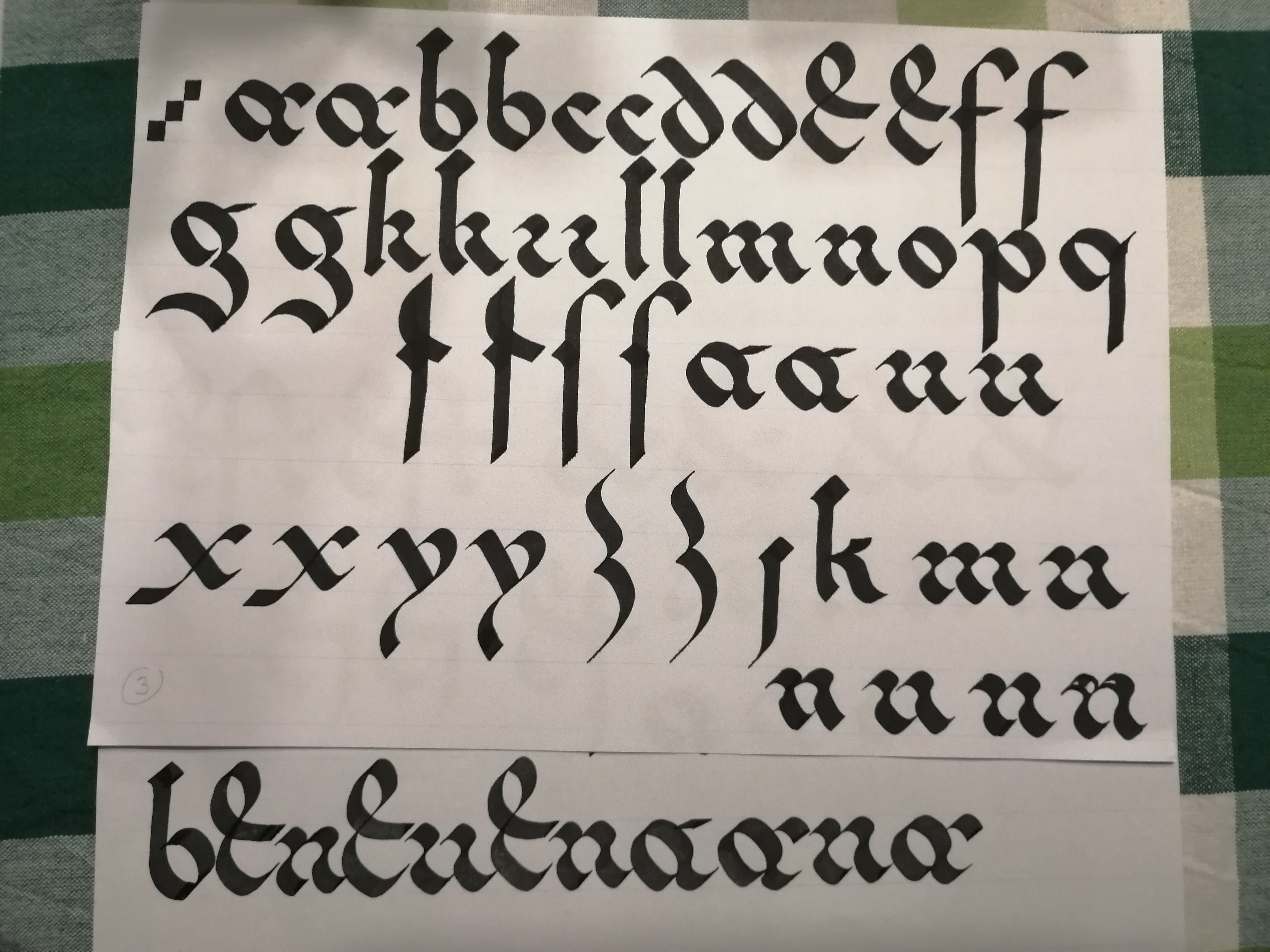 Ciao Dory, mi sembra complesso trovare il giusto ritmo di scrittura (oltre alle "ochette"). Ho fatto qualche prova, ma dovrò riprendere perché ho interrotto qualche settimana fa. Ti allego il massimo che sono riuscito a produrre finora (comprensivo della "traduzione" perché oltre al problema della scrittura c'è quello della lettura :) )