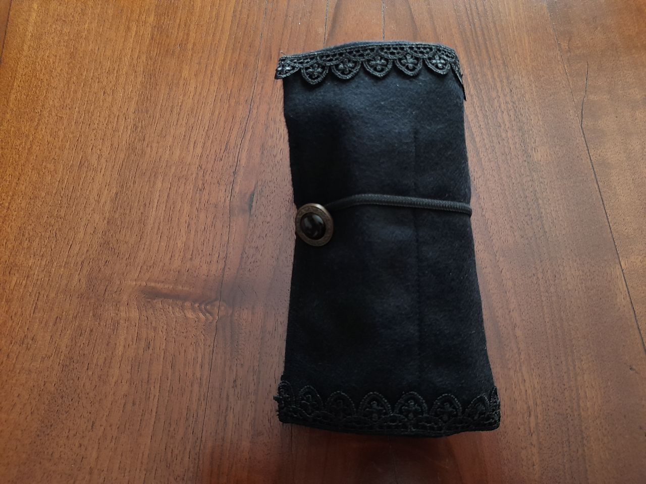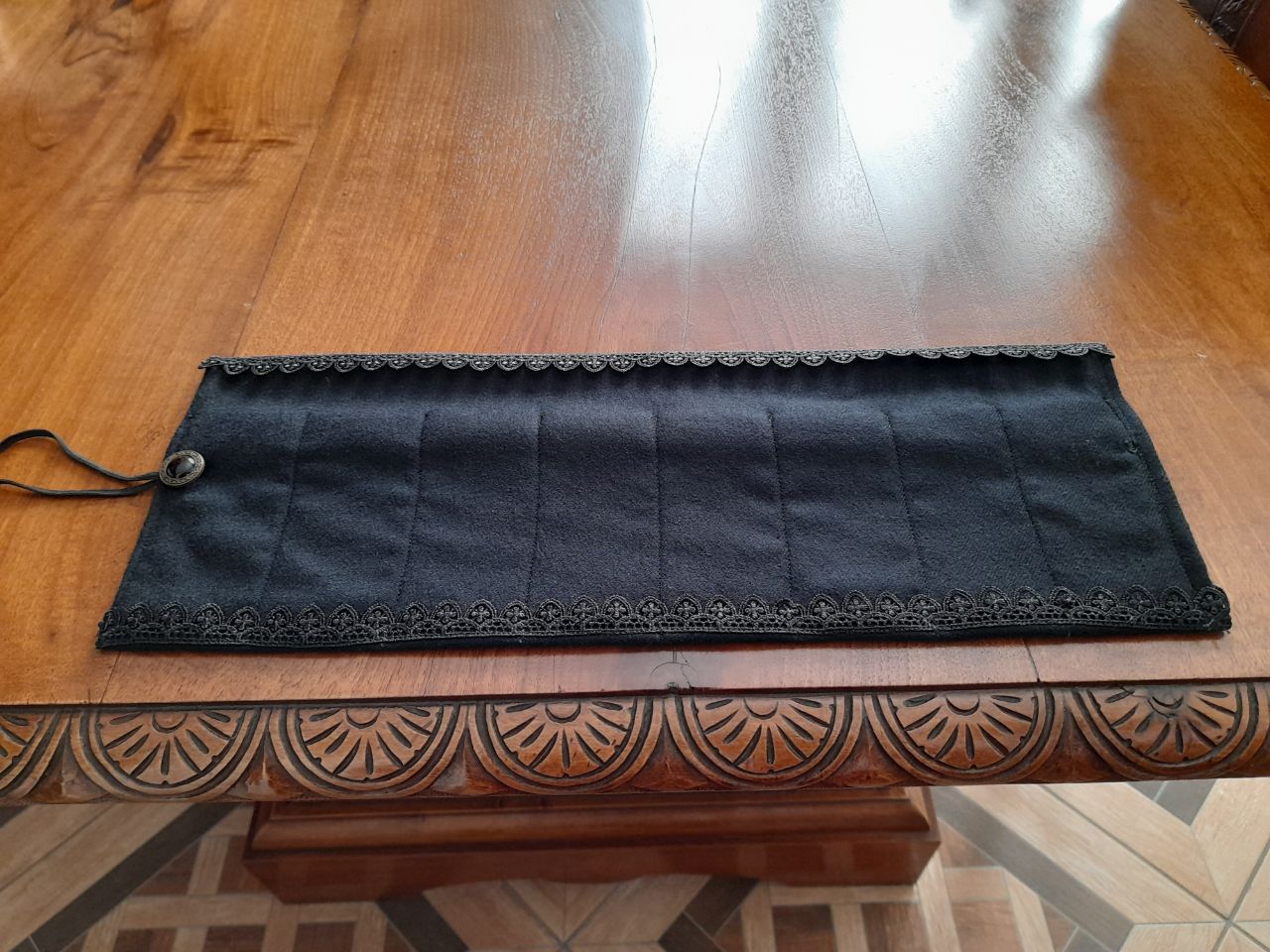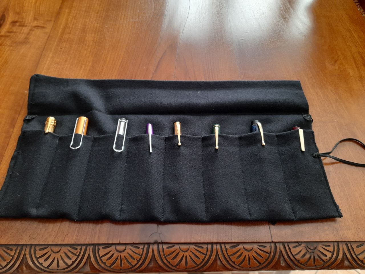 Vista l'imminente esigenza di portare con me le mie adorate penne e dopo aver vagato un po' per i meandri della rete, io e mia madre abbiamo deciso di provare a creare con le nostre mani (ma soprattutto con le sue, da sarta) un rotolo portapenne.