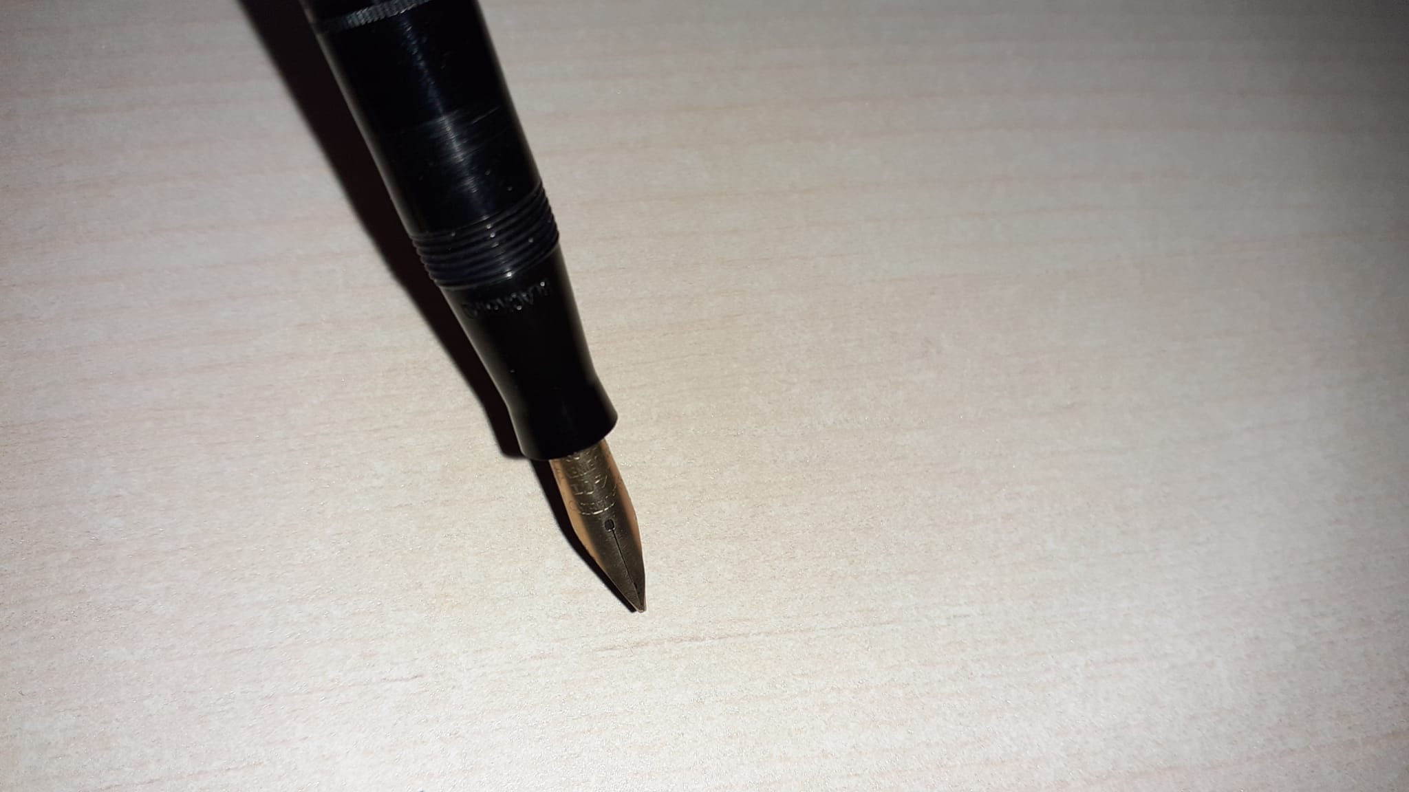 Da un video dimostrativo datato circa 1944, si vede molto bene una stilografica....sarebbe interessante se qualcuno riuscisse a identificarla (immagino sia molto difficile).Molto interessante il tratto a me sembra uno stub, ma potrebbe essere anche un B o un M con pennino tipo Montblanc (ovvero un filino """quadrato""" tale da rassomigliare ad uno stub-> mio personalissimo modo di descrivere il pennino)
