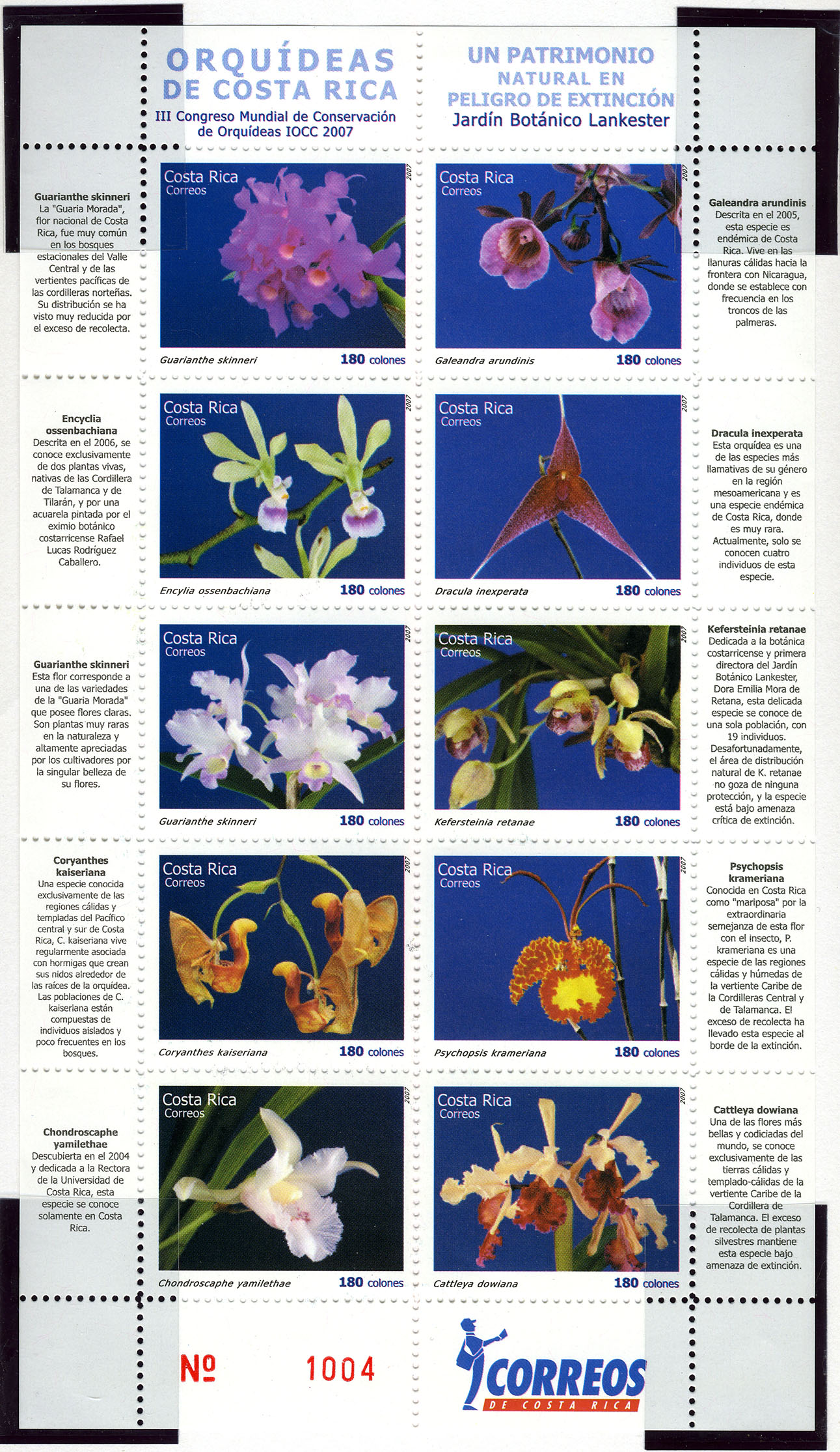 La Brassia suavissima del primo foglietto, cosí come le due emissioni della seconda fila e la prima a sinistra dell'ultima fila sono alcune delle specie di orchidee che ho scoperto e classificato io: doppiamente care!