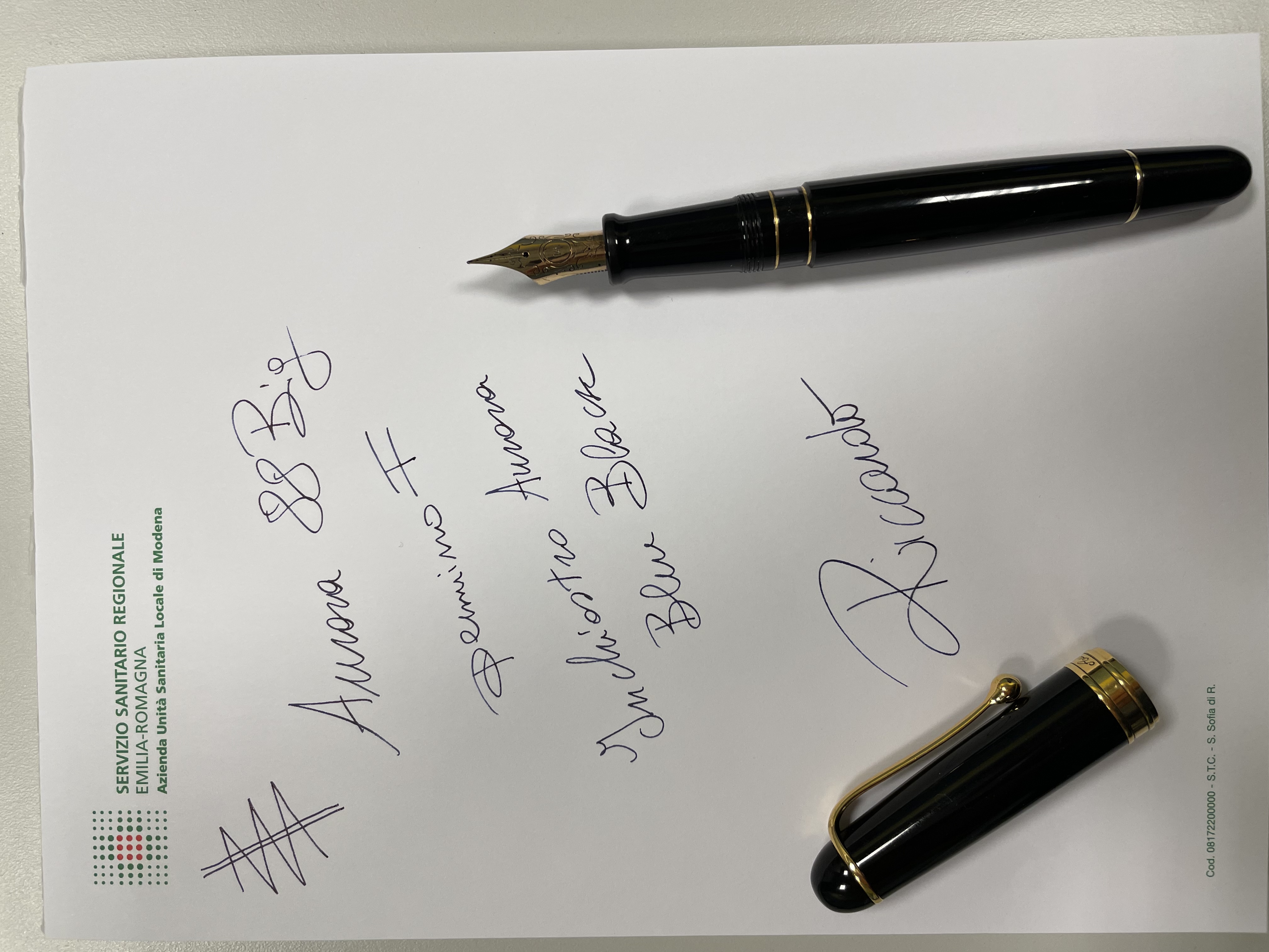 Mi autocito per aggiungere un esempio fotografico di quNto dicevo sulla 88 big e sul blue black in combinazione: tenete presente che è su carta fornita dall’azienda ospedaliera, quindi non certamente una Rhodiastanzarichi ha scritto: ↑sabato 6 febbraio 2021, 21:19Io lo uso su una 88 big fine che è veramente fine e la combinazione produce un tratto davvero asciutto. Però irregolarità finora non mi pare.
