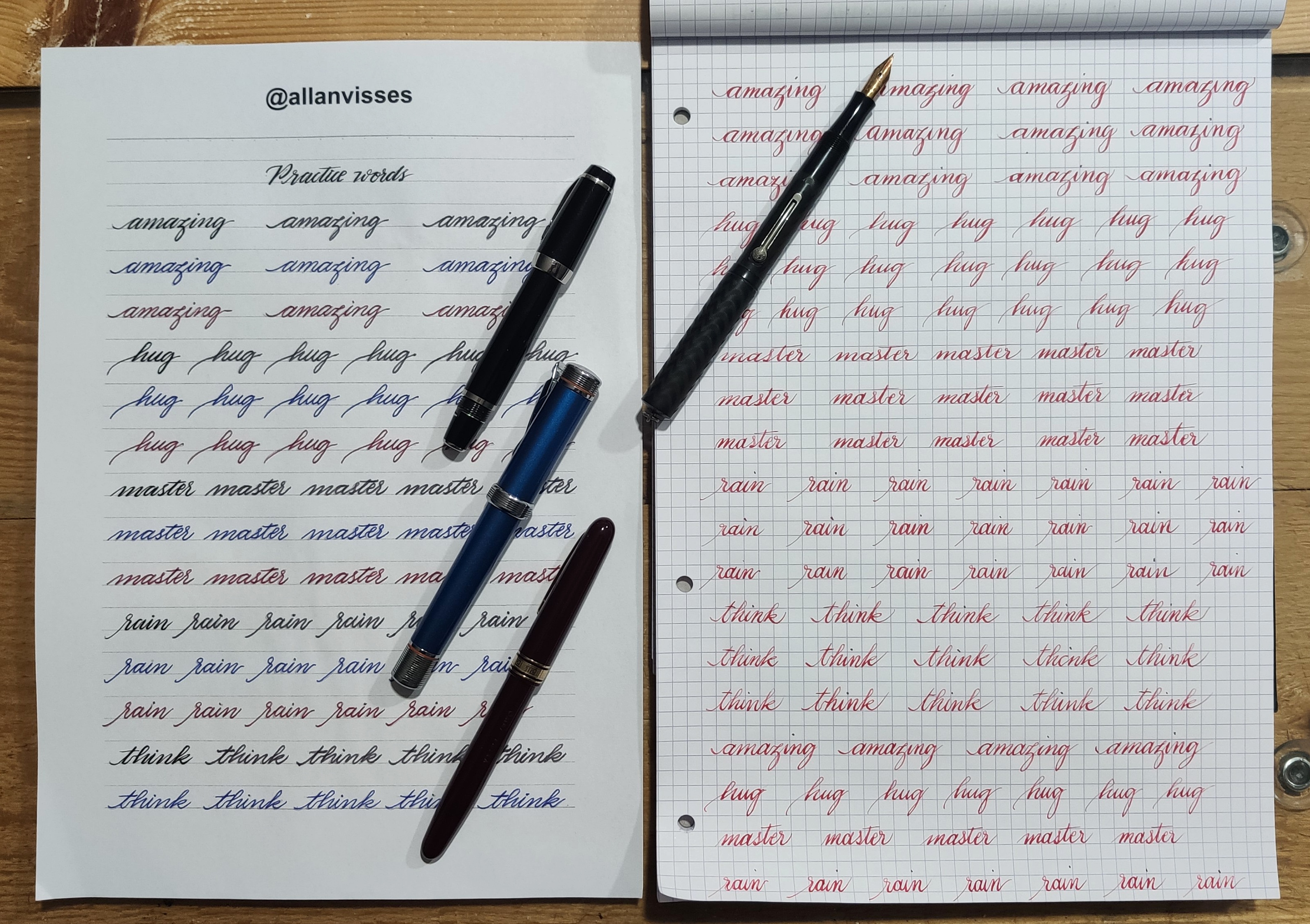Ho guardato alcuni video di questo calligrafo tempo fa su youtube e ovviamente ci ho provato perché l'ho trovato davvero gradevole. Tralasciando la bravura dell'artista secondo me il segreto é mettere qualcosa di leggermente morbido sotto il foglio o usare della carta più cedevole come carta vergata o da acquerello. Un piccolo appunto personale: scrivere a lungo con questo stile con la Bic ti stanca molto la mano.