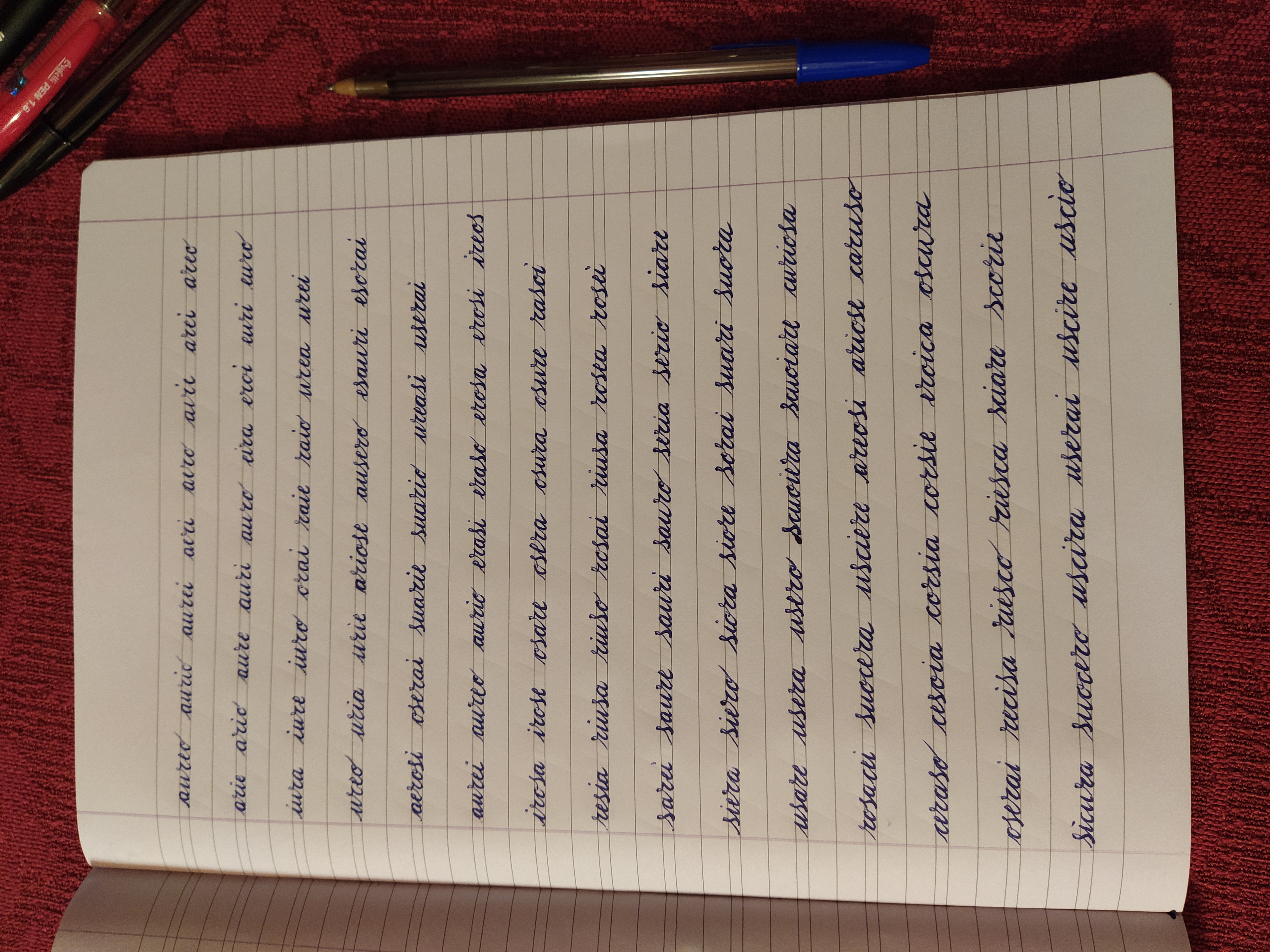 Ahimè sono un pessimo alunno...poco tempo e tanta fretta! Al momento sono al secondo libretto di falserighe ma dopo pochi esercizi mi stufo e finisco con lo scrivere parole a caso e in ordine sparso sui blocchi. Appena troverò un po' di pace (interiore
