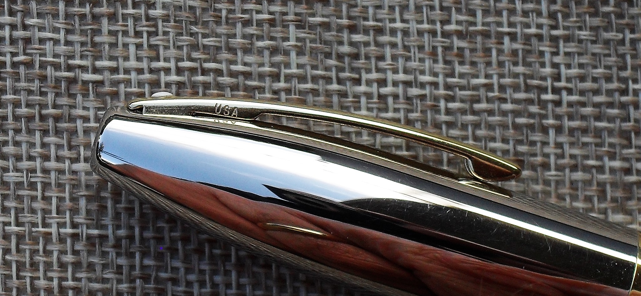 Si tratta di una stilografica che non passa inosservata e che pure non eccede, risultando abbastanza “leggera” alla vista. Il sistema di caricamento è il famoso “Touchdown” di Sheaffer, introdotto nel 1949 ed utilizzato su molti modelli, come le Touchdown, le TM, le Tip-Dip e le Imperial. La guaina di protezione del sacchetto che funge da serbatoio d’inchiostro è realizzata in metallo placcato d’oro a 23 carati.