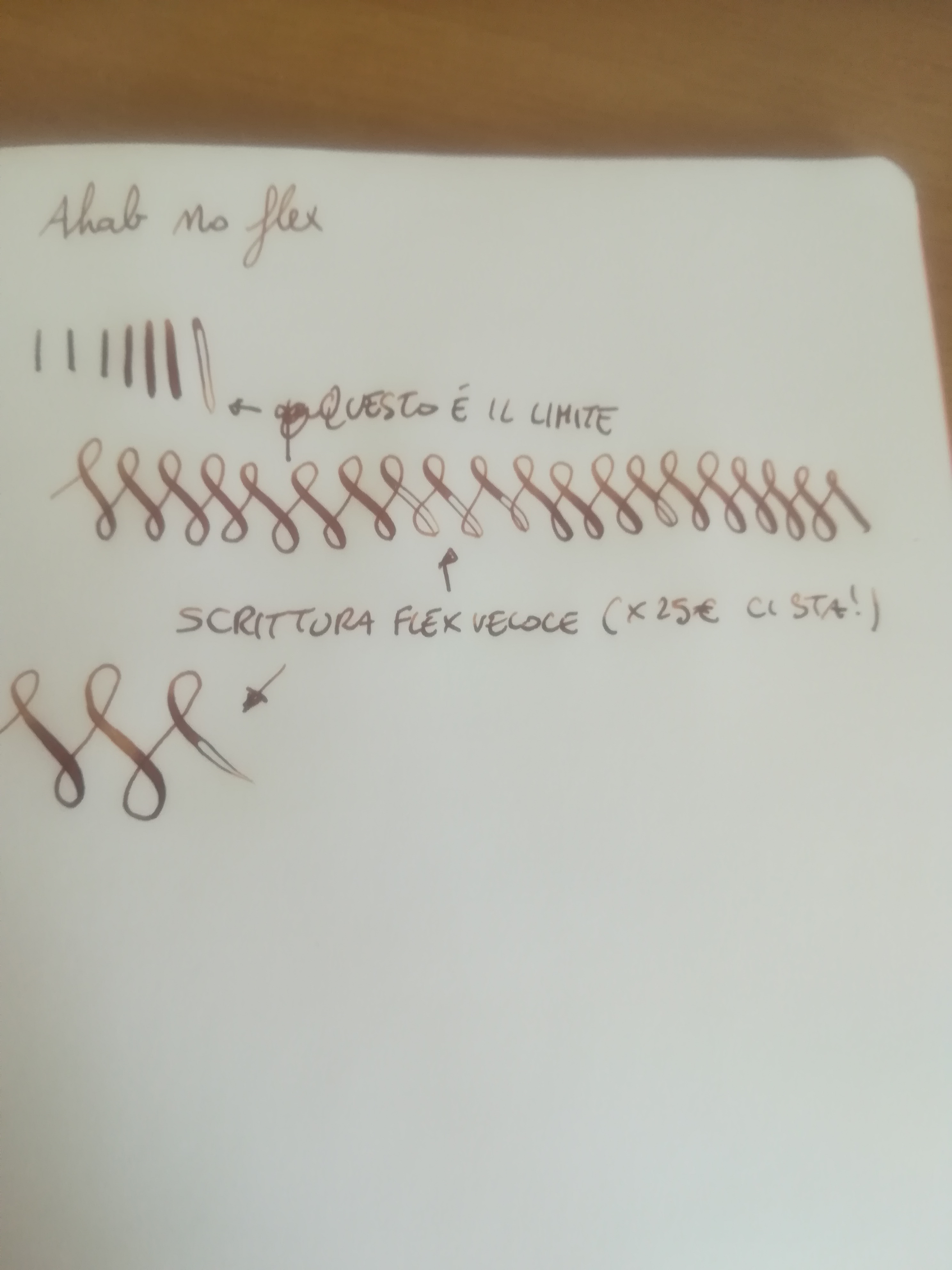 - ci sono penne da 200/300€ che sono flessibili ma scrivono peggio della Ahab (Pilot 912 FA) ;
