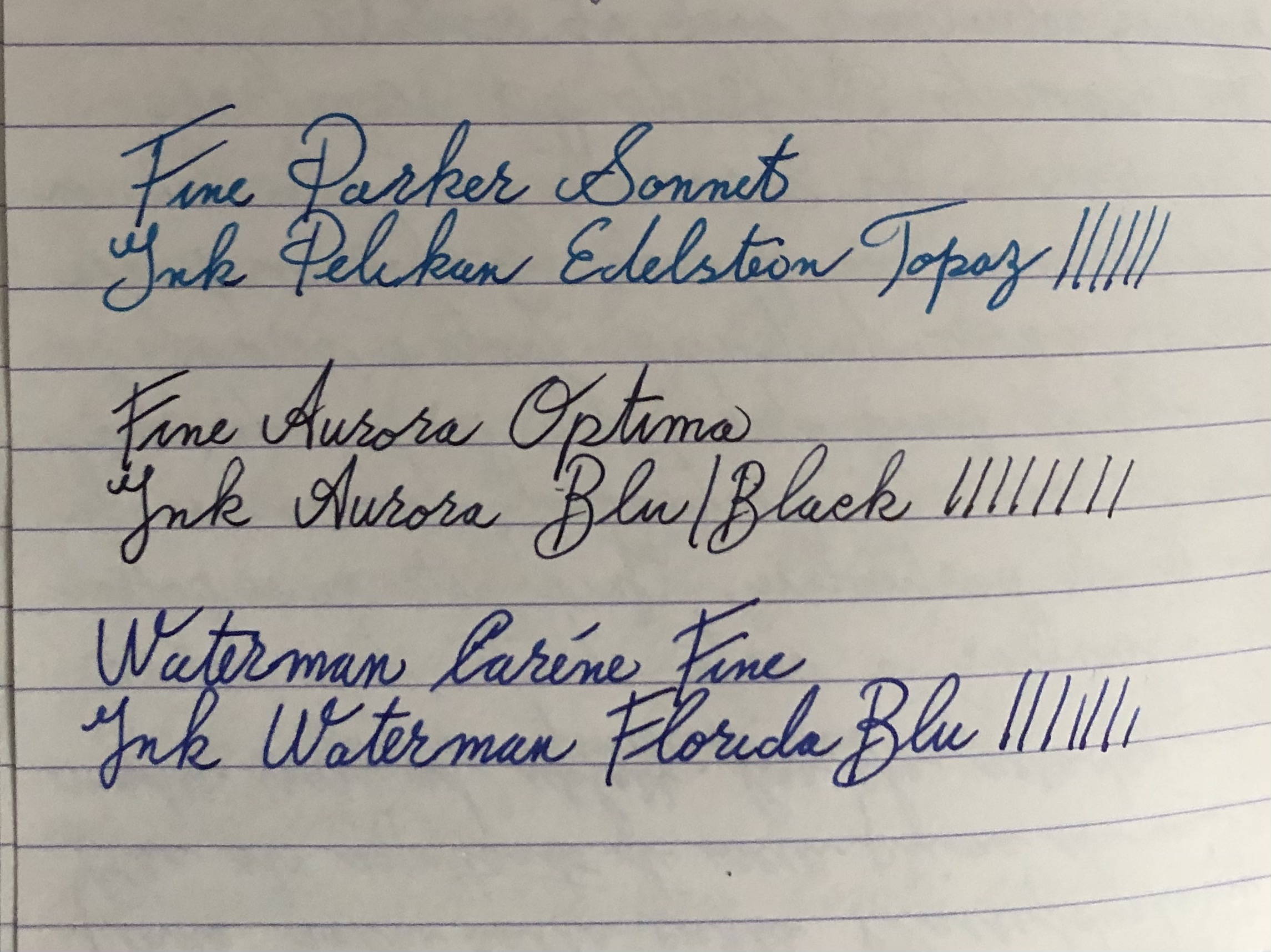Il fatto è che il tratto è decisamente sul medio abbondante... uso le sue cartucce Waterman Florida Blu su agenda della Ciak, che trovo ottima per le stilografiche, anzi ha una tendenza a contenere l'esuberanza di molti pennini