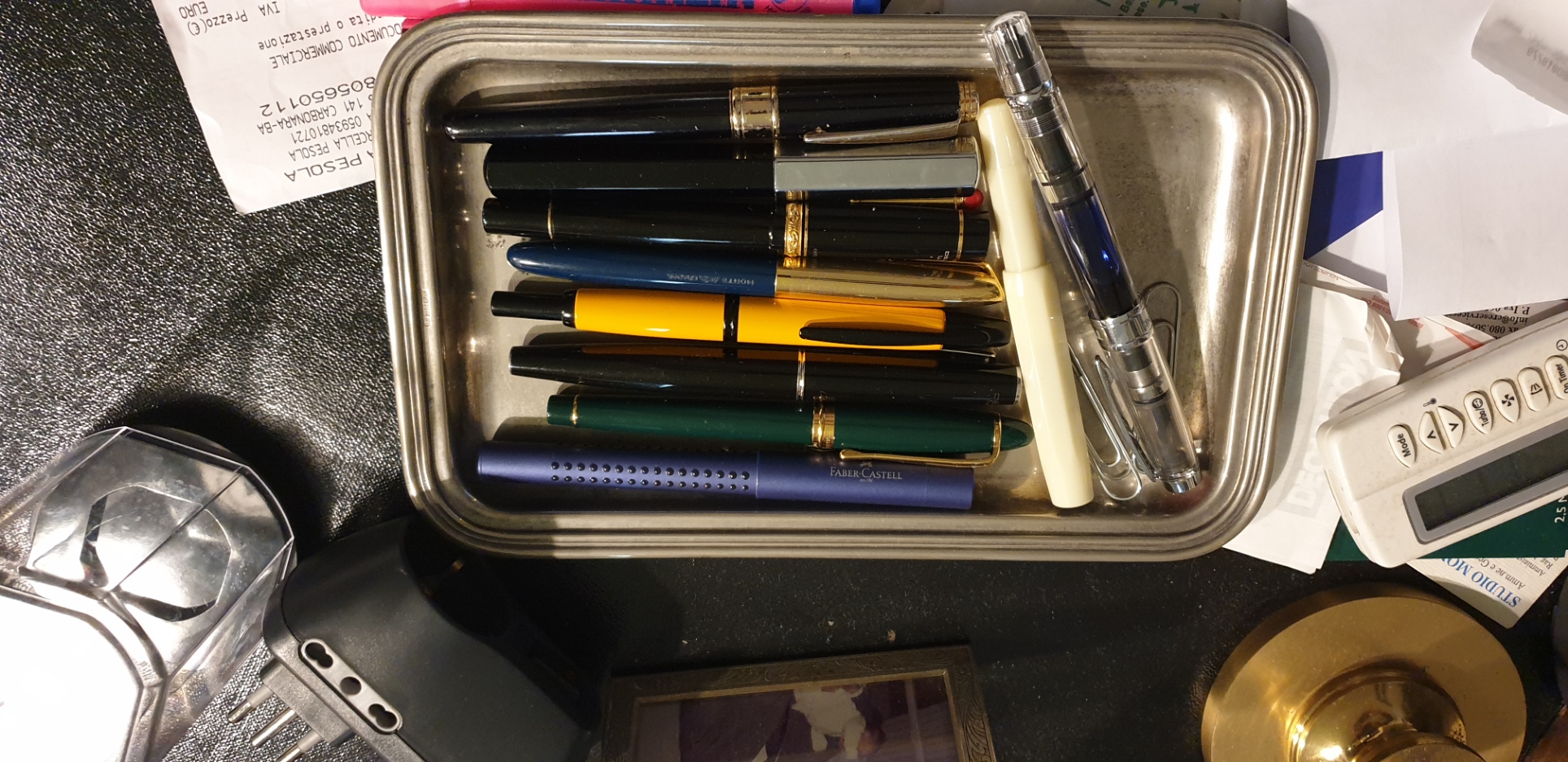 mi è tornata la passione della stilografica che si era assopita ... tanti anni fa annusavo gli inchiostri, le rilegature dei libri, dove infilavo il naso sino alle cuciture delle pagine, e quando potevo stazionavo nelle librerie e respiravo quell'aria ... accarezzavo (come tutt'ora ancora talvolta accade) i fogli per sentire gli inchiostri o le abrasioni lasciate dal passaggio dei pennini; ho qualche penna, niente di strabiliante tranne una delta we, le altre rientrano nella norma ... oggi sono alla ricerca di una penna japan style, dunque a forma di sigaro e con cappuccio rigorosamente senza clip ... avevo adocchiato una namisu horizon ebonite (inglese lo so) ma è sold out, non si capisce se fuori produzione; attendo speranzoso vs consigli.