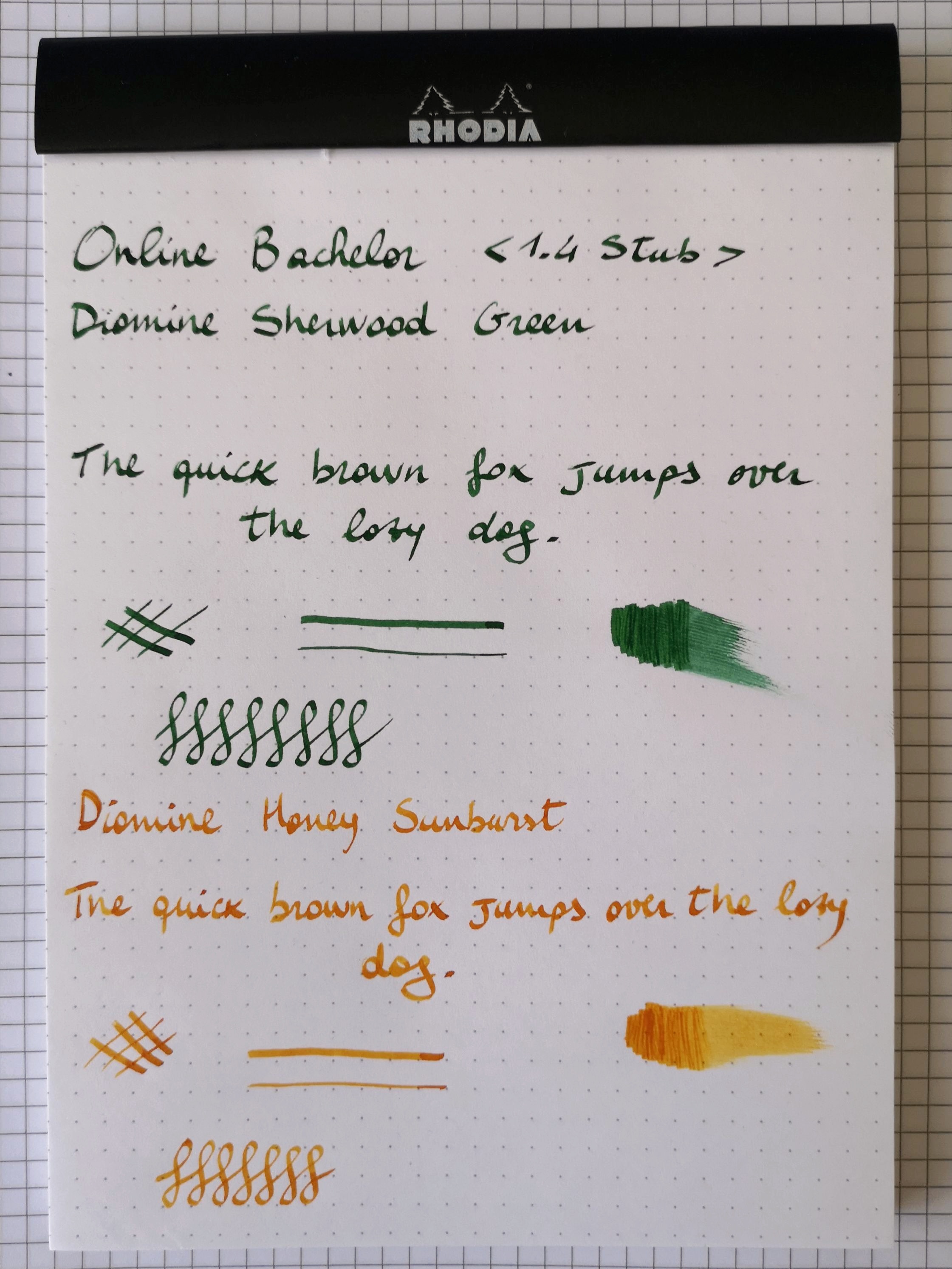 Però ho avuto più di qualche falsa partenza e anche qualche salto di tratto, questo più con il Diamine Honey Sunburst che non con il Diamine Sherwood Green. Probabilmente quest'ultimo è più lubrificante