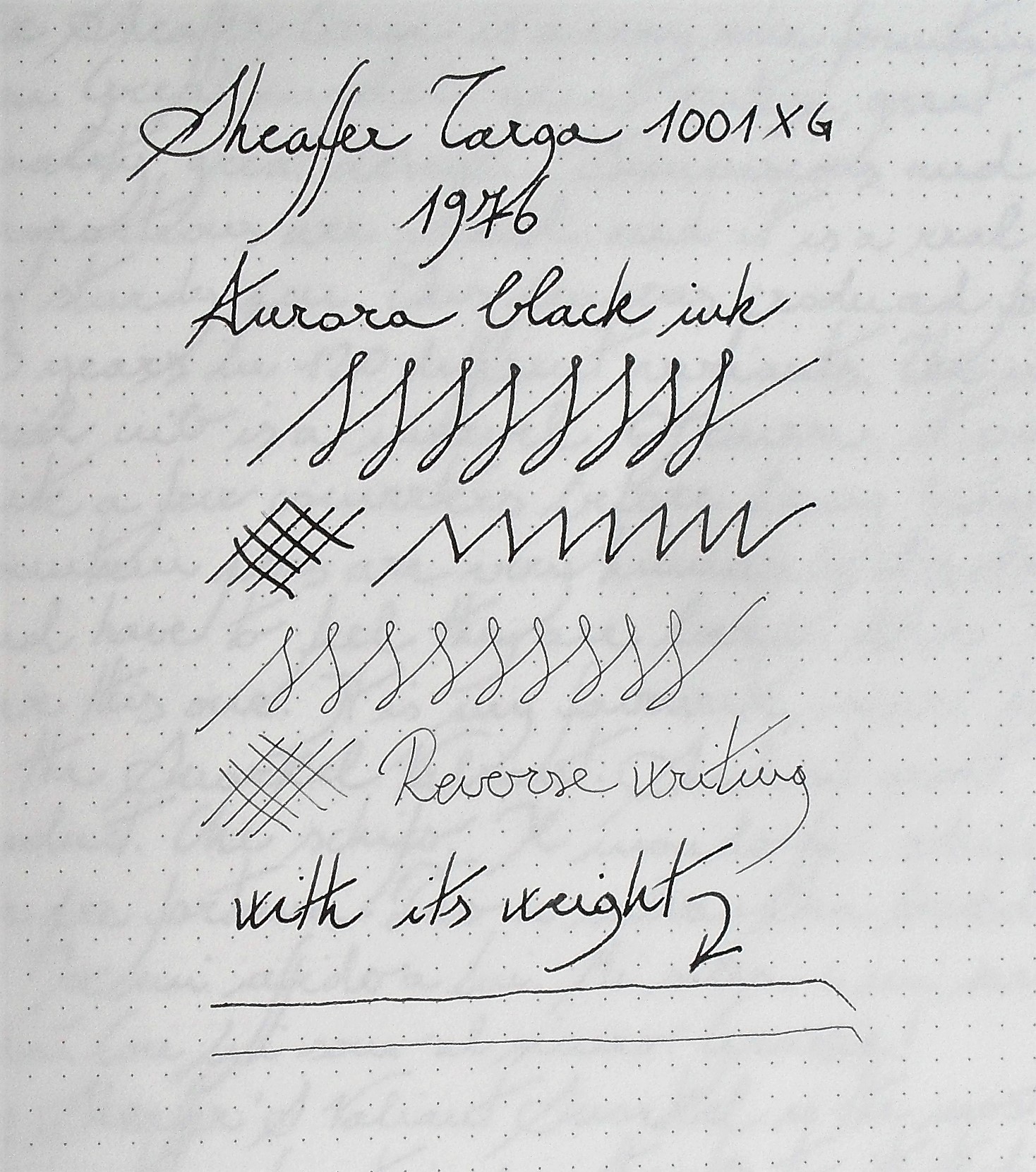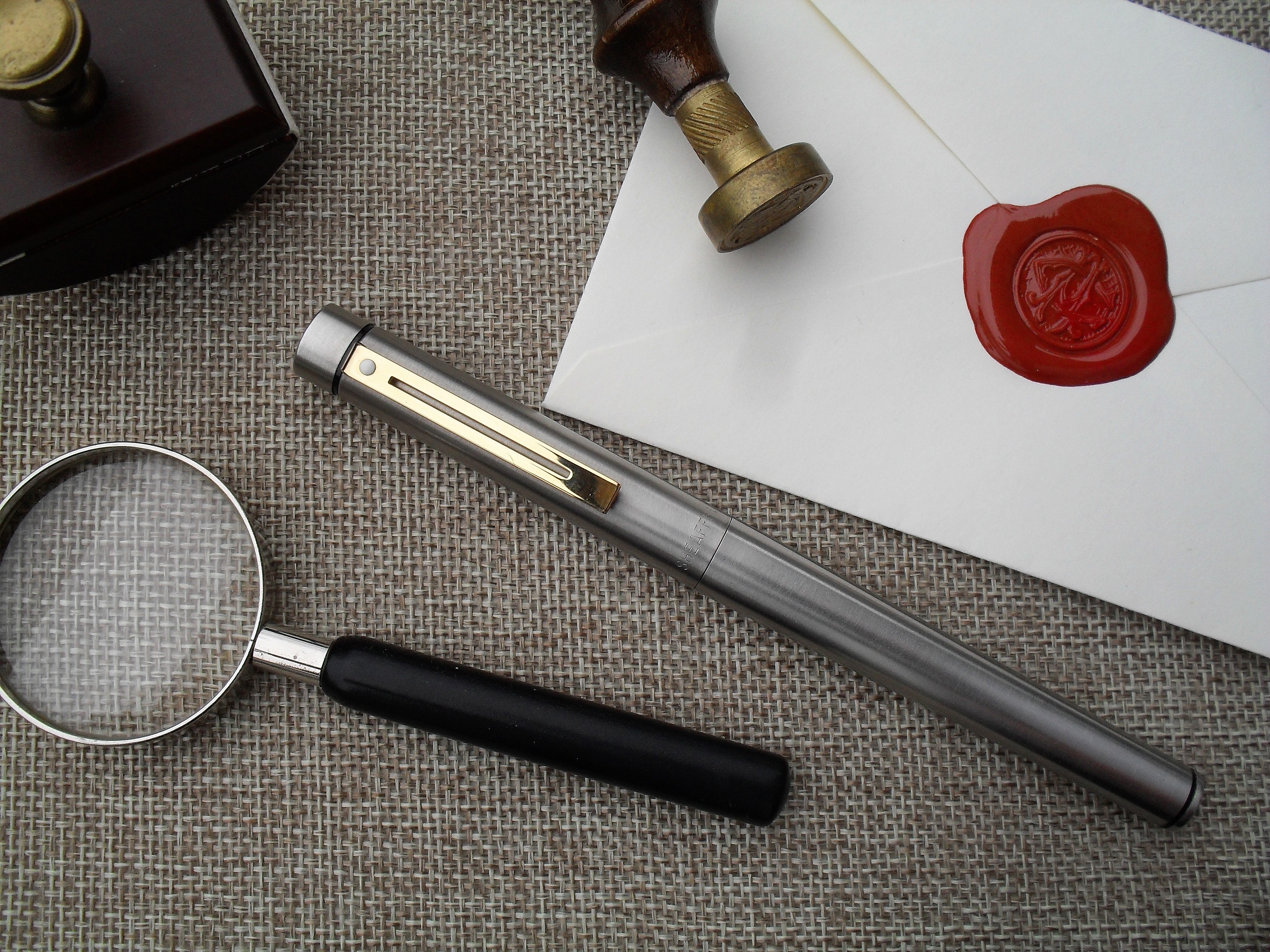 L’esemplare che vedete è codificato 1001XG. Si tratta d’una prima serie, in acciaio spazzolato con clip dorata. Una stilografica robusta, adatta ad un utilizzo “sportivo” e che tuttavia esibisce una certa eleganza, specialmente durante l’uso.
