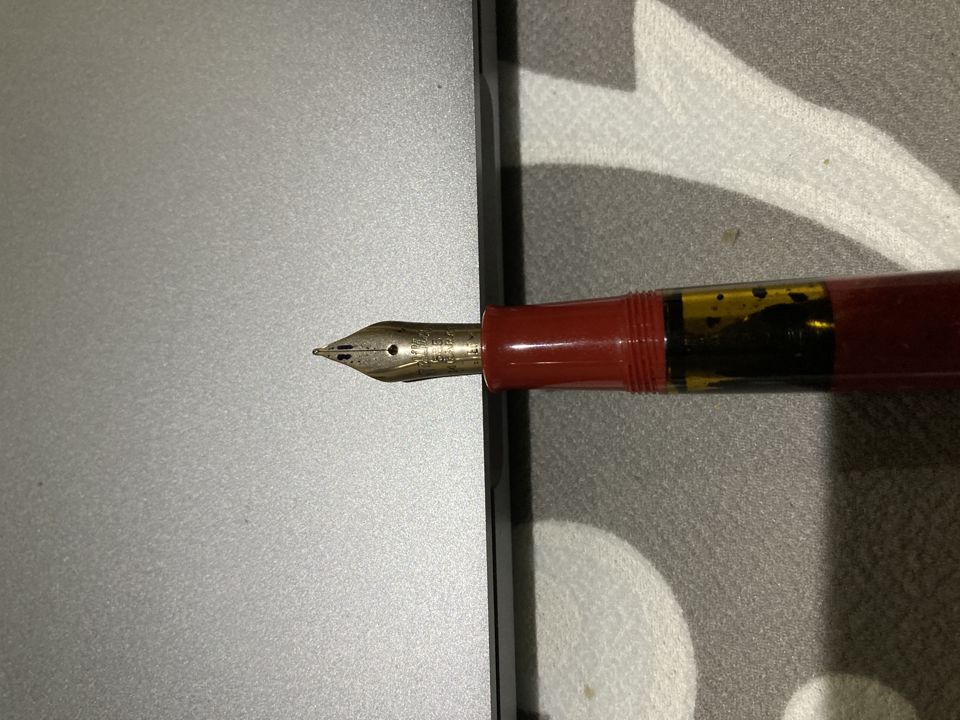 Misurando la parte del pennino che fuoriusciva dalla sezione, ho avuto il sospetto che, a penna chiusa, il pennino toccasse impercettibilmente il controcappuccio. Allora ho smontato il pennino con l'alimentatore e li ho rimontati in maniera che il pennino sporga meno dalla sezione - l'ho tirato indietro circa 1 mm.