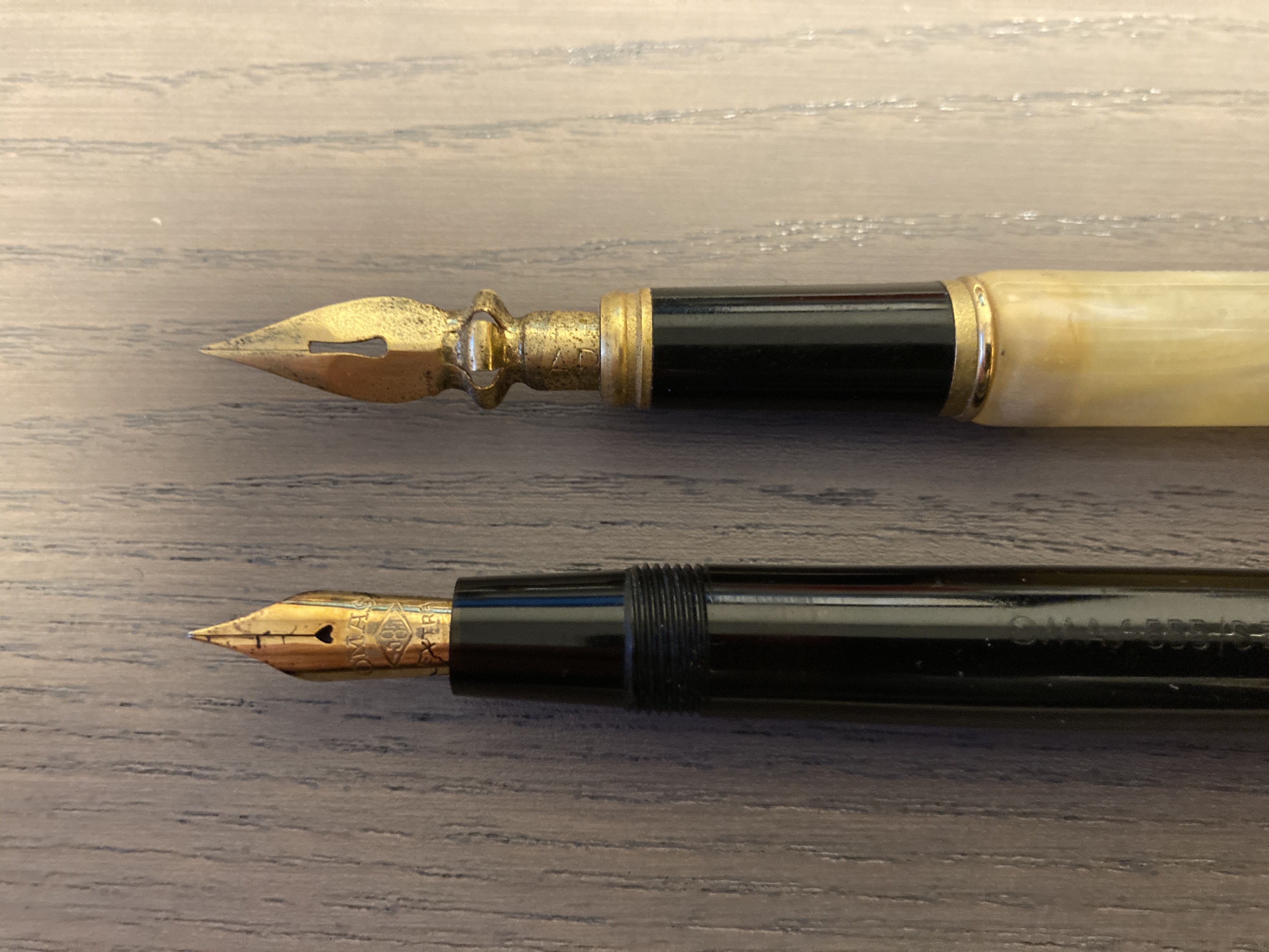 Oltre al piacere di vedere quelle belle penne, la fotografia fornisce anche un elemento utile a sfatare miti persistenti. La misura del pennino non ha nulla che vedere con le sue prestazioni flessibili. Di fatto, tra le penne che presenti, quella con il pennino più flessibile è anche quella con il pennino più piccolo, la Anonima pennino "Para", che tu definisci