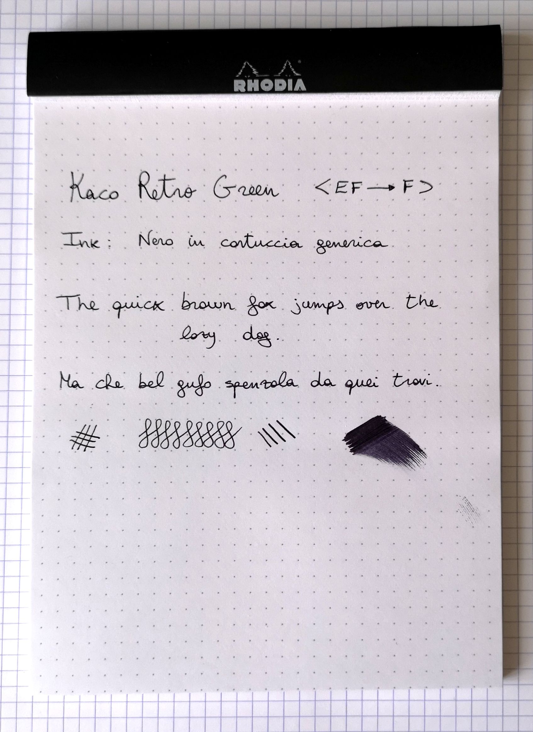 La penna in questione è definita sia Retro che Green, facendomi pensare che forse Retro stia per la linea di stilografiche e Green sia il nome del modello in particolare, o viceversa, la faccenda non è molto chiara