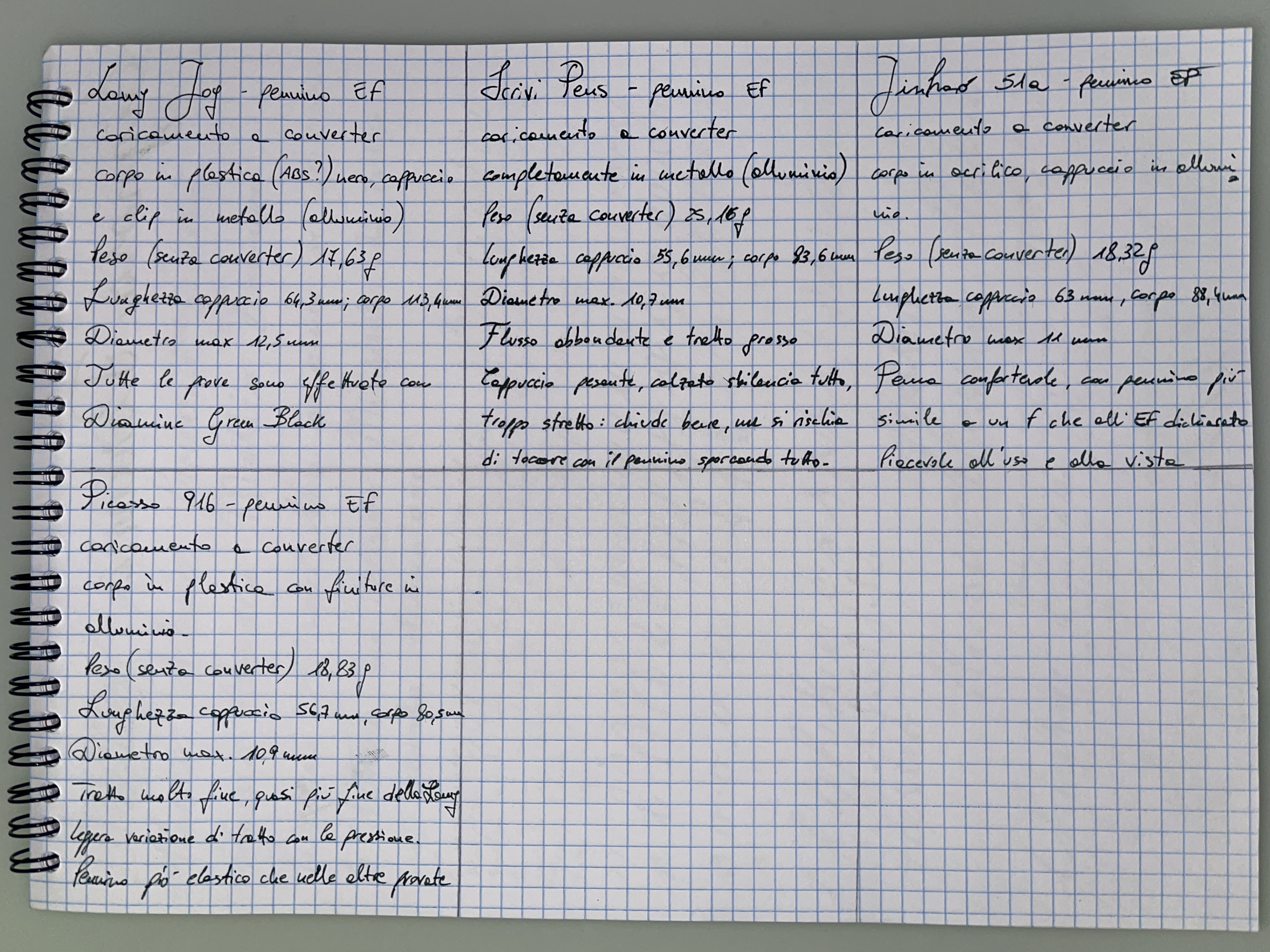 Non ho notato altri problemi e la scrittura è piacevole, ma visto che posso, rimanderò indietro anche questa bella penna. Proverò a prendere la versione scoperta e, al limite, cambierò il pennino con uno più fine.